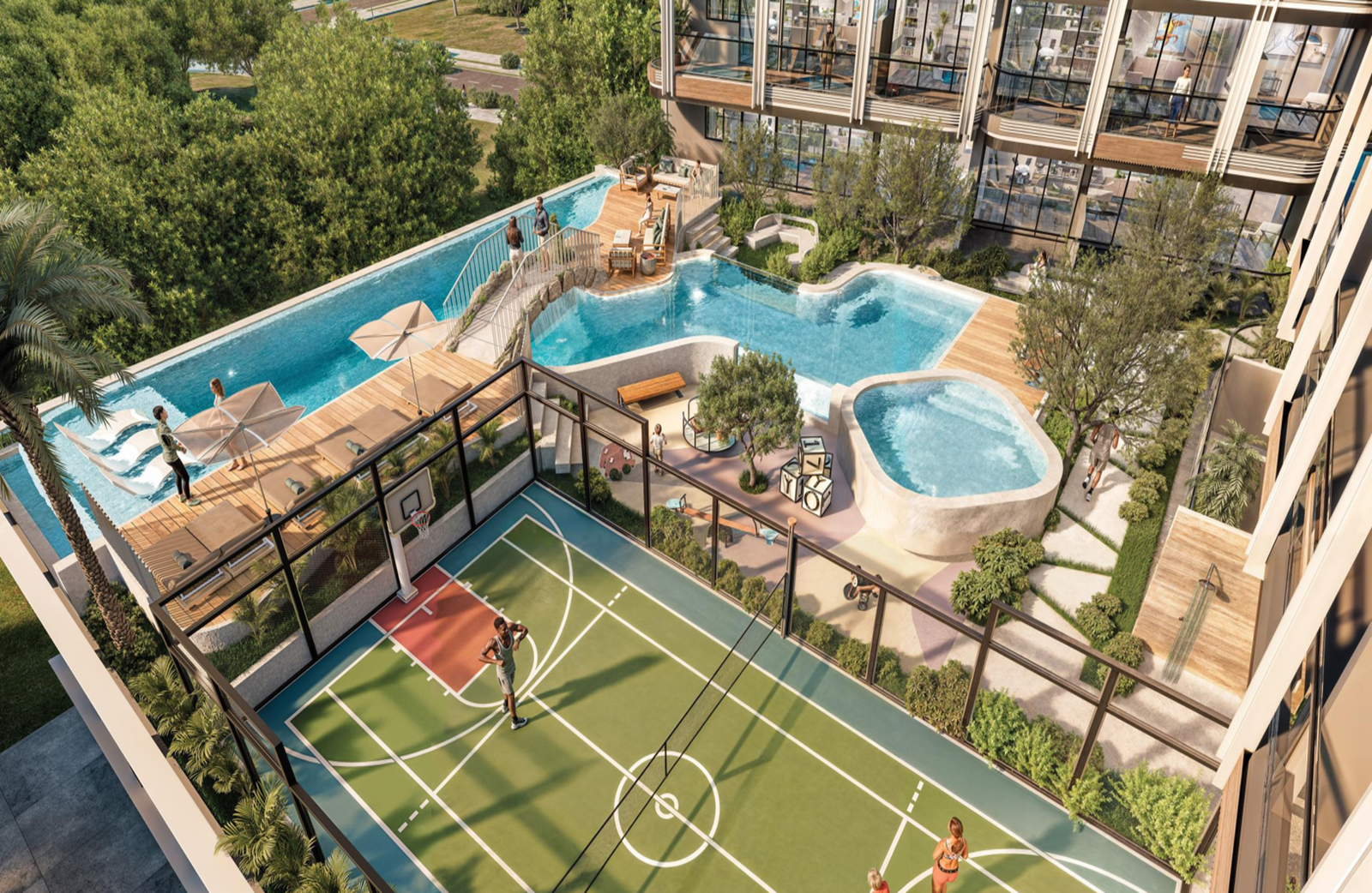The grand design lobby area welcomes visitors through interior design elements that refine the ambience to enjoy the leisure class lifestyle. The roomy living spaces were designed to bring in abundant sunlight while producing a soothing atmosphere. The interior detail within the living space's precise engineering from floor-to-ceiling windows presents the city panoramas at its best. Everyday routine becomes an elegant indulgence because the bathroom presents designer sanitary ware and a spa-like feel. Residents can enjoy sophisticated pool enjoyment at the podium level, where they find a luxurious swimming pool with separate configurations for adults and children. Fitness-conscious people can experience complete workout satisfaction thanks to the advanced facility which includes first-class gym equipment. The rooftop area delivers a unique skyline perspective, where residents can build lifelong memories. Experience the beauty of the skyline from the rooftop section transforming into an exclusive sanctuary for its residents. Enjoy movies under the stars at the open-air cinema creating unmatched elegance while spending quality time with family and loved ones. Residents can unwind by practising yoga and appreciating the calm zen garden as well as relax in the rooftop lounge, creating a perfect atmosphere for socializing. Mutual enjoyment reaches its pinnacle when residents utilize the barbecue and dining zones, which present incredible city views during special outdoor occasions.