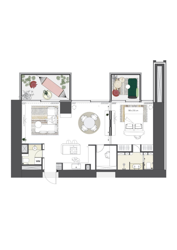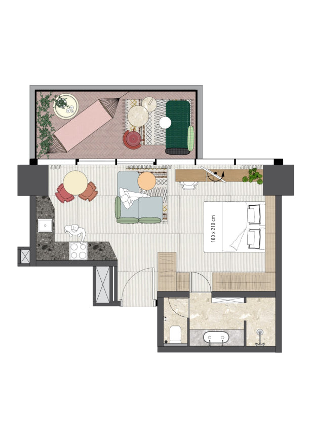 Living in 25H Heimat will enable you to benefit from access to top-notch amenities., including an exclusive sky lounge and an ice recovery bath that will become your favourite place to relax after a long day. Other facilities within the development include swimming pools for adults and children, a jacuzzi, a recreational area, an indoor cinema, a big chess area, and children’s playgrounds. Freelancers will be interested in the on-site hybrid co-working space and a music room and podcast studio, while sports enthusiasts will appreciate indoor and outdoor gym facilities, a mini golf space, a paddle tennis court, and a rooftop yoga area. There will also be a pet zone on the territory of the development for those who have furry friends. Premium services, like in the famous 25hours hotels, will allow residents of these beautiful branded residences to live their best lives. Moreover, there will be 525 parking spaces available to the residents of 25H Heimat.