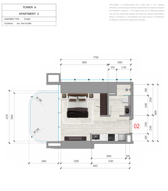 luxurious studio to 2 bedroom apartment