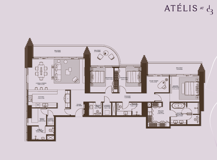 Designed by the visionary studio Skidmore, Owings & Merrill (SOM), the architects behind the iconic Burj Khalifa, Atélis at d3 draws inspiration from the elegance and resilience of a desert flower. Its architecture mirrors the delicate strength of this Emirate’s bloom, with curving balconies layered like petals, giving the façade a fluid, organic form.Atélis at d3 offers a curated lifestyle that blends resort-style serenity with the vibrancy of urban living. At ground level, cascading pools, lush garden rooms, and secluded indoor-outdoor lounges create an atmosphere of privacy and exclusivity. This level also features an outdoor co-working space, an entertainment room, a children’s learning area, and a spacious multi-purpose room that opens out to the gardens.The interiors offer a refined experience of serene living, inspired by the delicate petals of a desert flower. Graceful, sweeping curves flow effortlessly through each space, softened by a warm, natural palette and accented with slender bronze details that add a quiet sense of glamour. This design approach transforms everyday living into an elevated experience, crafted for those who seek beauty, subtlety, and splendour woven seamlessly into their surroundings.
