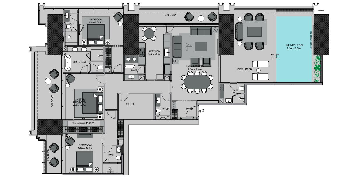 Burj Binghatti Jacob & Co Residences is a premium residential project, which is considered to become the tallest residential building in the world. Currently, the record belongs to New York’s Central Park Tower. To create this exclusive residential development, Binghatti Developers has teamed up with Jacob & Co, who is a luxury jewellery and watch company. Among the 299 units for sale are luxury 2.5-bedroom suites from the Sapphira Villa collection coming with a study and storage room, 2-bedroom residences from the Emerald Villa collection, deluxe 3-bedroom residences from the Ruby Villa collection, 4-bedroom half-floor Diamond Sky Mansions and 6-bedroom half-floor Fleur DE Jardin Sky Mansions. Those who wish to experience more luxurious living might be interested in buying a Sky Penthouse. Burj Binghatti offers two unique 5-bedroom Astronomia Sky Penthouses, each on their own private floor, and an exclusive 7-bedroom Billionaire Sky Penthouse spreading over two private floors, sitting at the top of what will be the tallest residential tower.