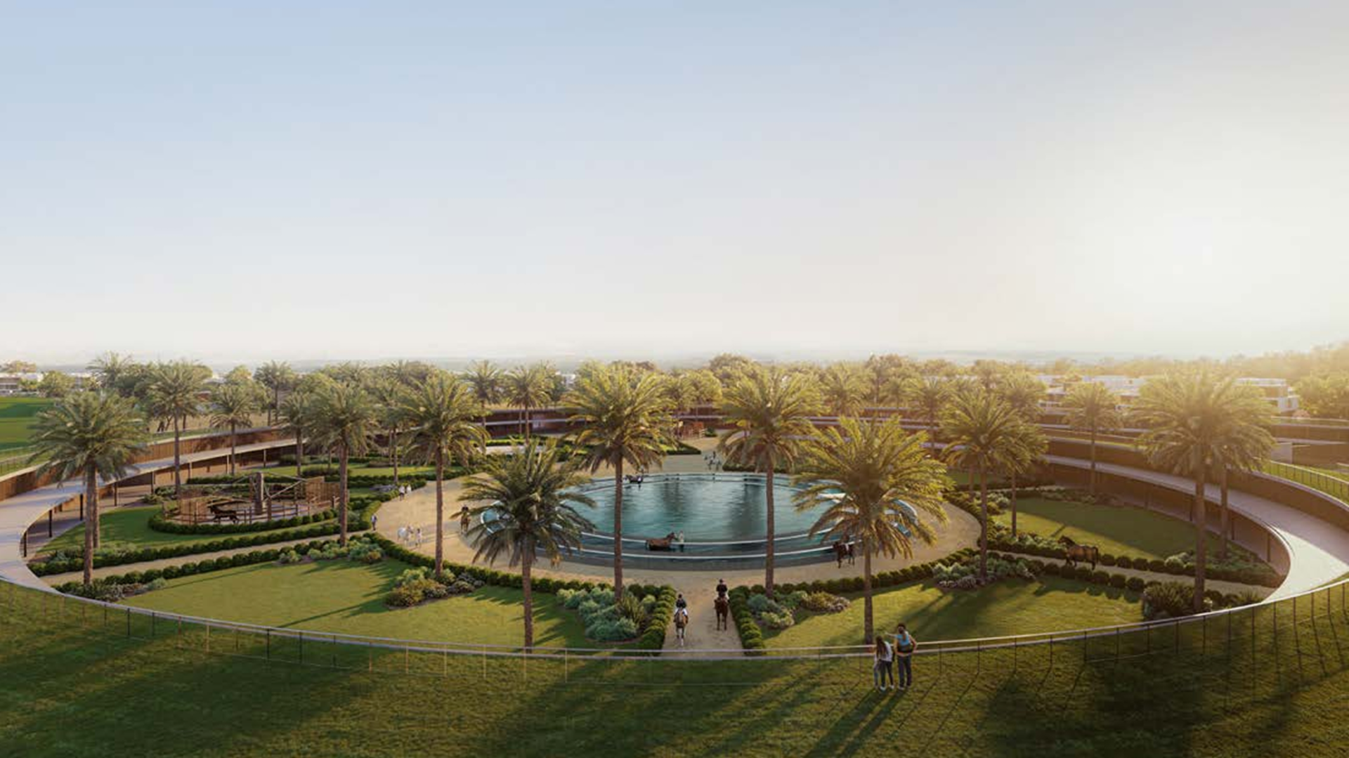 The entrance reveals a game-changing perspective with world-class high-end interiors, showcasing a spatial artistic expression. The polished marble floor brings natural light in multi-layered patterns that transform every space into refined and noble elegance. The interior design uses soft luxurious tones combined with earthy elements which make the building blend with countryside serenity alongside its large dimensions. Daytime sunlight brightens the interior spaces, whereas evening time brings families outdoors through the courtyard and extensive terraces. Here, modern luxury seamlessly intertwines with a peaceful sanctuary. The interior spaces bring more than just comfort to the dwellers because it establishes the connection between residents and lifestyle experience. Yes, this is the lifestyle that you are waiting for, the equestrian desire that presents a synchronised connection with nature and nobility. The main attraction, the clubhouse presents itself as an impressive architectural statement that combines modern minimalist aesthetics with Arabian cultural traditional patterns. Each element uses natural land features along with classic and fully equipped healthcare facilities including a gymnasium, floral arrangement that follows seasonal rhythms and wooden trails to create beauty and encourage an active lifestyle. The stables are crafted for worldwide standard in equestrian design while following the natural landscape around a garden. Residents can enjoy walking in the serene landscapes and foster relationships through network paths that stretch through the estate’s geographic layouts and affectionate bonds.