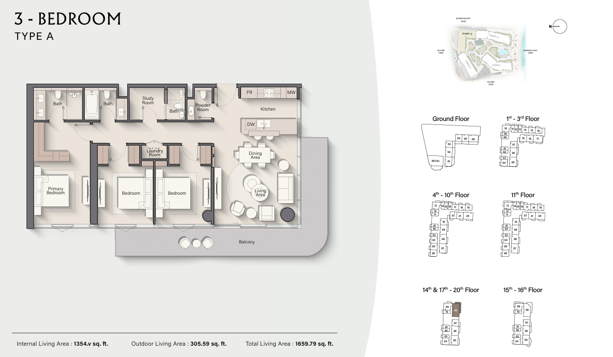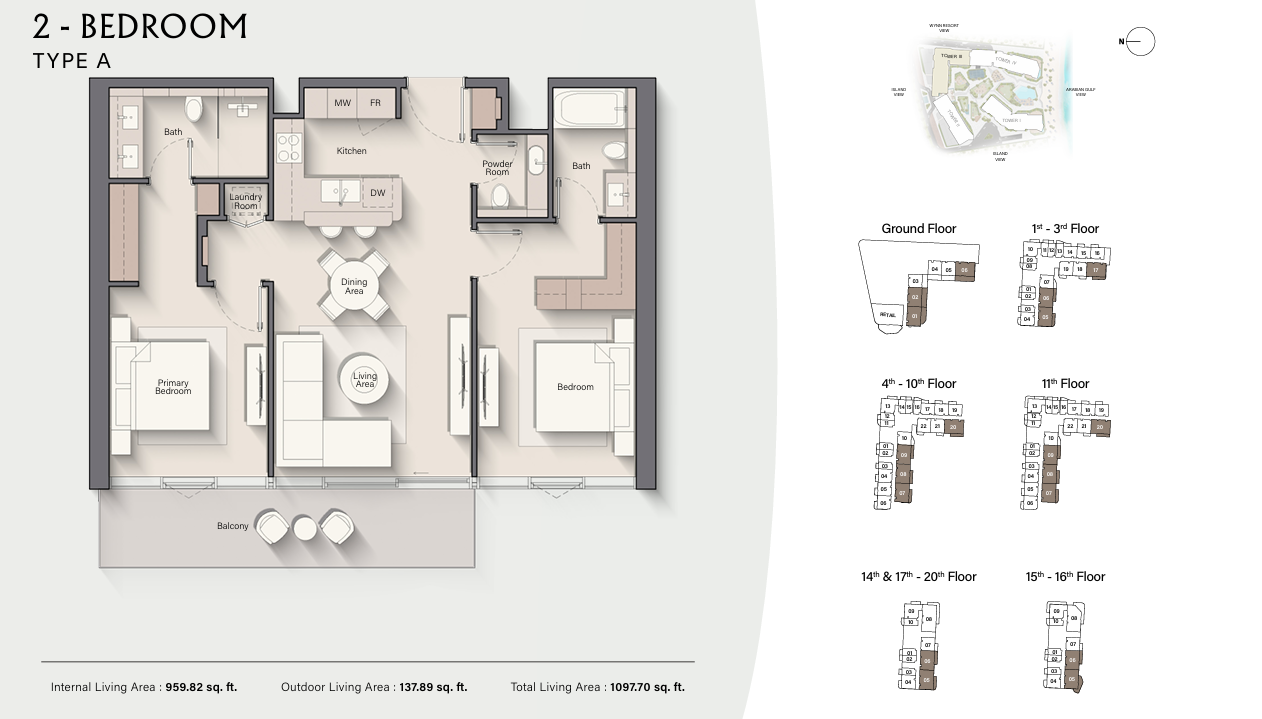 Living at the development means residents get immediate access to personal beachfront space which invites them to relax within elegant cabanas and traverse the unspoiled waterfront. Those who prioritize wellness will find their ultimate retreat at the fitness center together with spa facilities, Pilates studio and wellness areas. The community atmosphere thrives because of the clubhouse as well as the outdoor cinema and the social lounges.