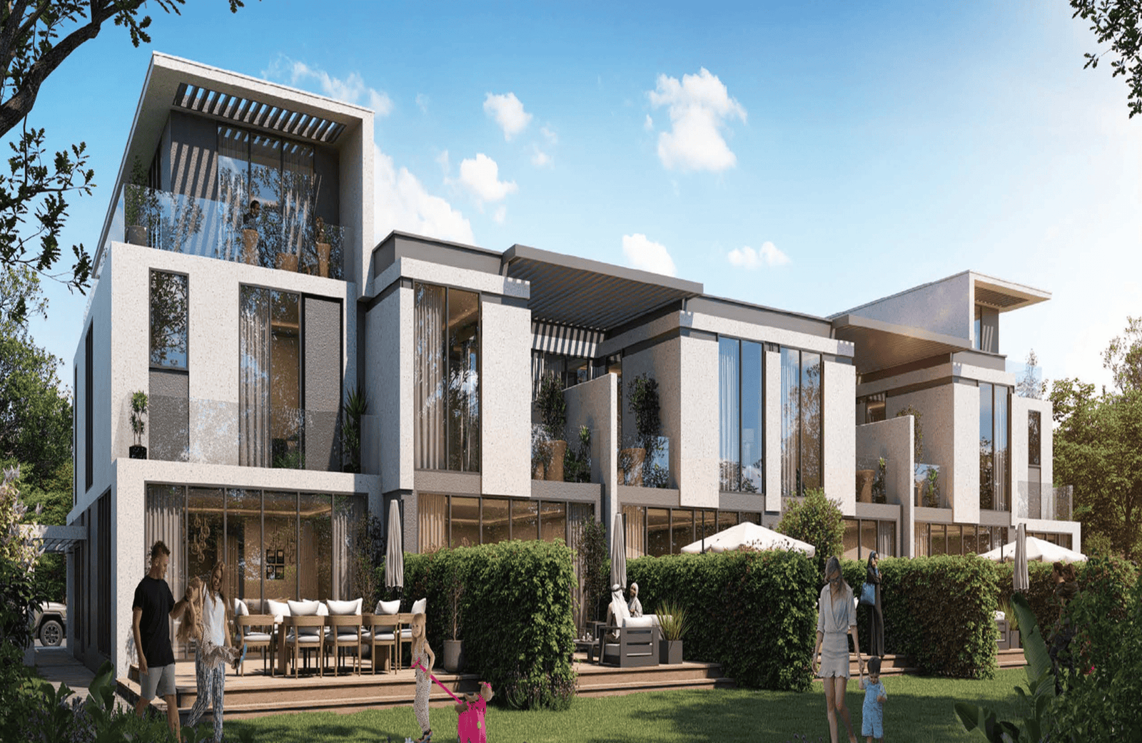 Damac Sun City at Dubailand is an innovative class residential community development by the renowned Damac Properties offering the premium collection of 4 & 5 bedroom townhouses. This latest launch development aims to redefine the luxury living by combining the modern design with nature-inspired aesthetics, presenting a serene enclave to explore and thrive. The façade integration within the serene spaces and landscape creates a private oasis, where its residents can foster a deep connection with nature lined with the convenience of modern living.