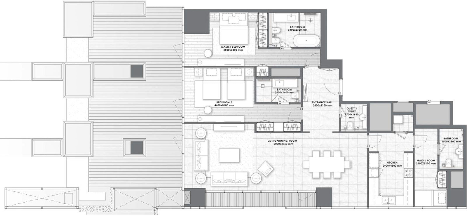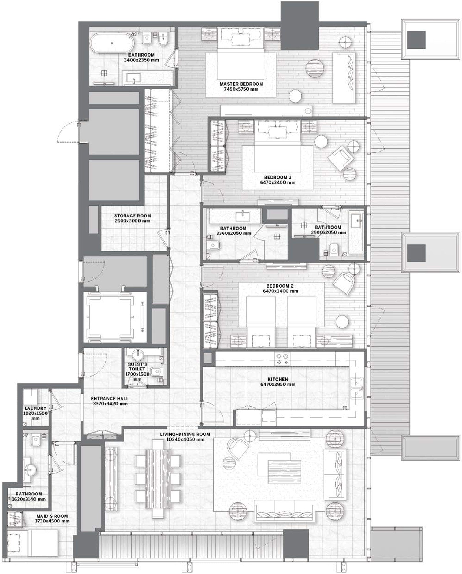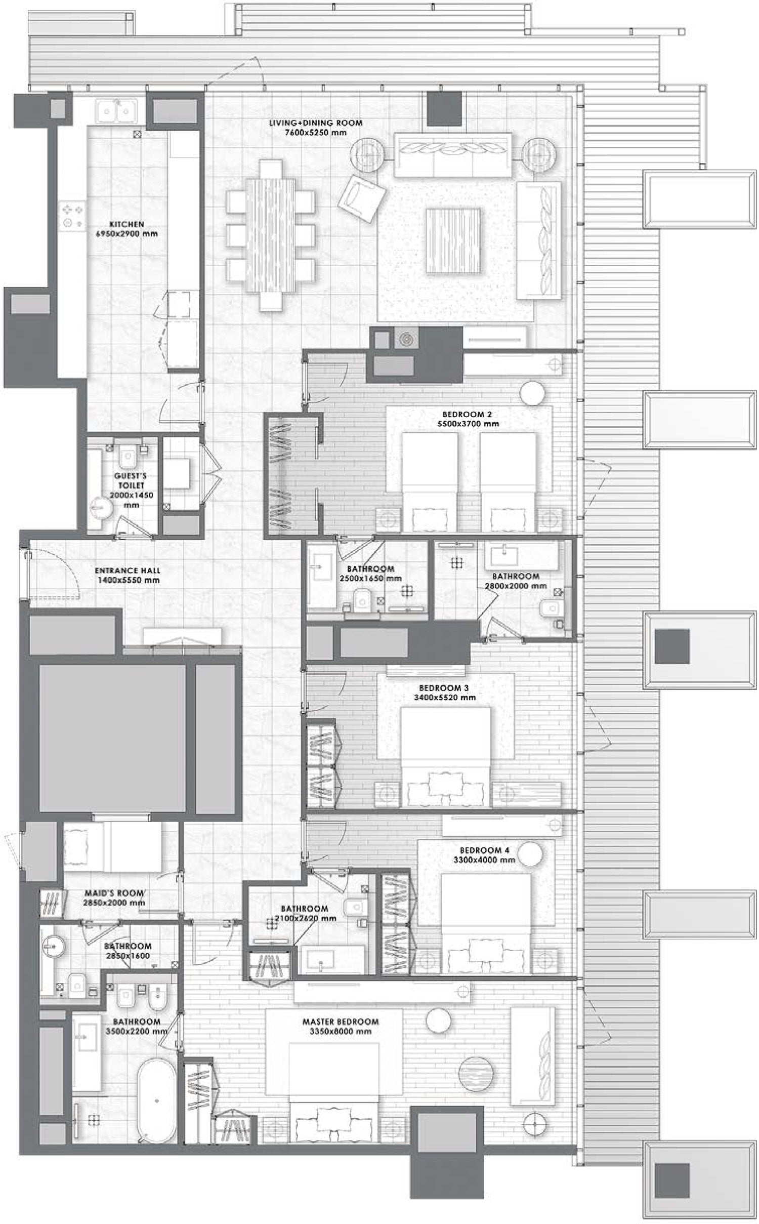 The spacious two, three & four-bedroom ultra-luxurious marble residences in Dubai are designed by Pagani with private outdoor spaces and open light-filled mature interiors, with incredible panoramic views of the water canal, skyline & Downtown Dubai