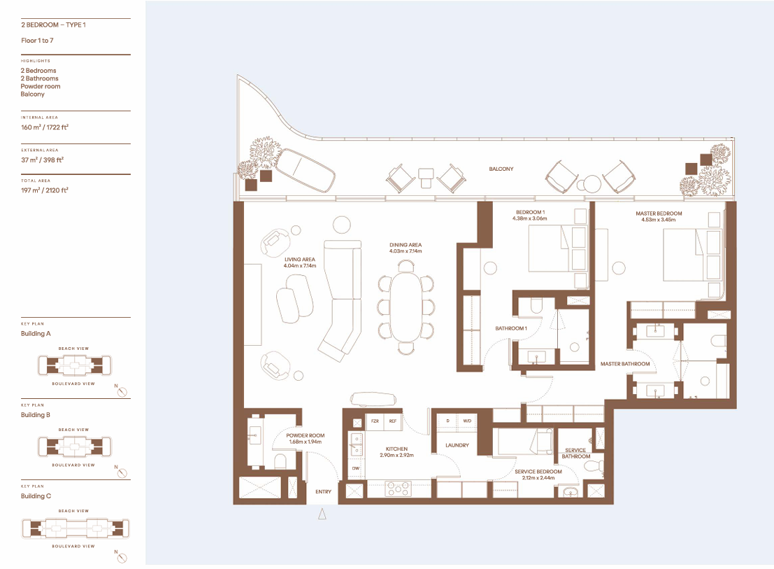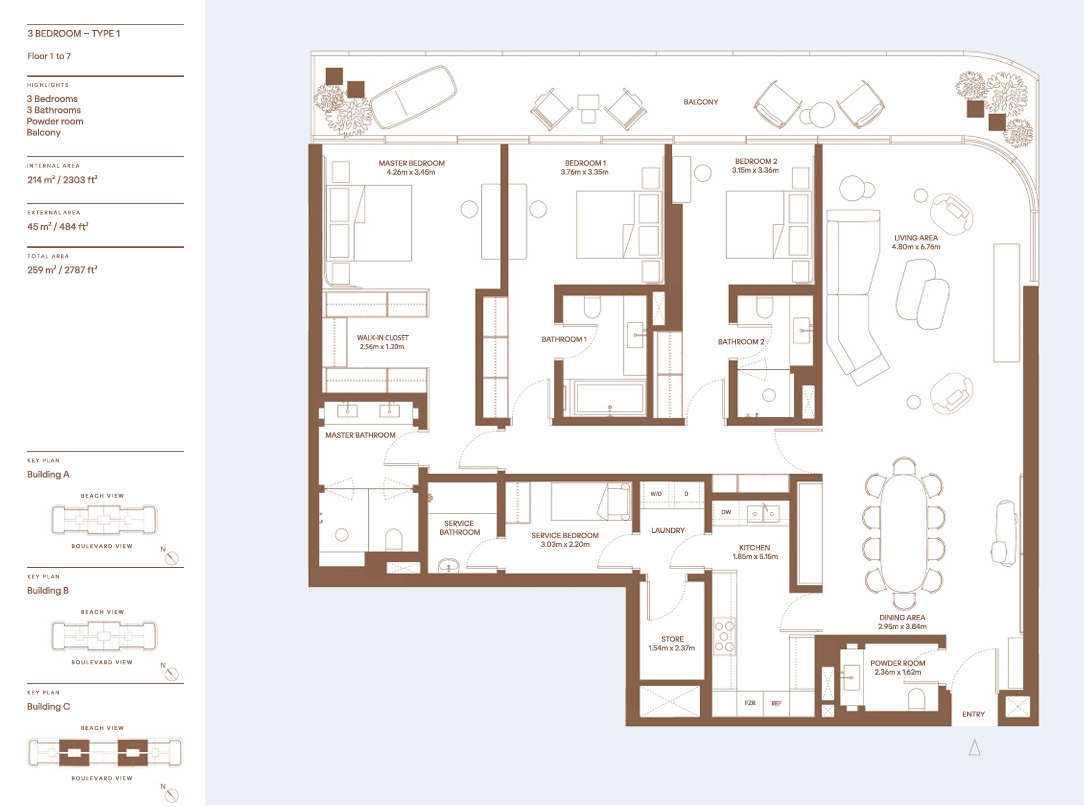 These refined residences feature generous layouts, high ceilings, and large terraces designed to be enjoyed year-round. Each home features nautical colour palettes, rich in deep blues and crisp whites, and impeccable textures and finishings. These exquisite elements are bathed in natural light and accompanied by panoramic sea- and city-scapes. Situated in a prime position in the heart of Dubai Harbour, they provide owners with unrivalled proximity to vibrant marinas, a private beach, refined places of retail and leisure, and the open seas. All whilst immersing them in the rich culture and dynamic rhythms of our iconic city, whose centre is just moments away due to the excellent connectivity of these homes.