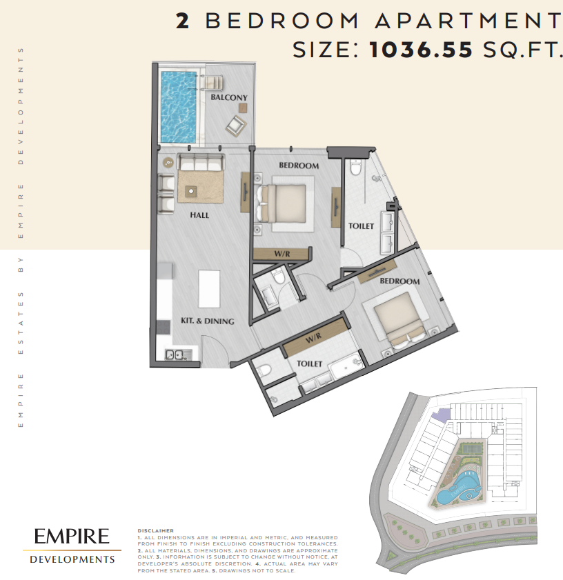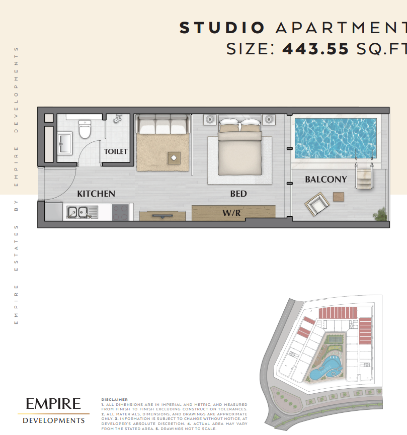Empire Estates is a high-end residential project in Arjan, Dubai, developed by Empire Development. It appears to cater to various preferences with its range of apartment sizes, including studios, 1-bedroom, 2-bedroom, and 3-bedroom units.As a luxurious development, Empire Estates is likely to offer upscale amenities and features to enhance the residents’ quality of life.The mention of spacious units suggests that residents can expect ample living space in their apartments, providing comfort and room to customize their living areas.The inclusion of stylish bathrooms indicates that the design and fixtures in the units are carefully selected to create a modern and elegant atmosphere.Having fully fitted kitchens is a convenience for residents, as it means they can move in without worrying about purchasing and installing appliances. Large living spaces are a desirable feature in any residential development, as they provide room for relaxation and entertainment.Arjan is a well-known neighborhood in Dubai, known for its mix of residential and commercial properties. It’s a part of Dubailand, a prominent entertainment and leisure destination in the city.It’s common for luxury residential developments to offer a wide range of amenities such as swimming pools, fitness centers, landscaped gardens, and 24/7 security. Proximity to shopping centers, schools, parks, and transportation hubs is often a consideration for residents, so it’s worth checking what’s available nearby.