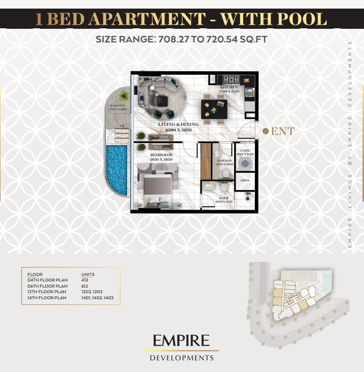 Explore Empire Livings in the vibrant Dubai Science Park. This upscale residential enclave features a range of luxurious living spaces, including sleek studio apartments, generously sized one-bedroom apartments, and exclusive one-bedroom duplexes.