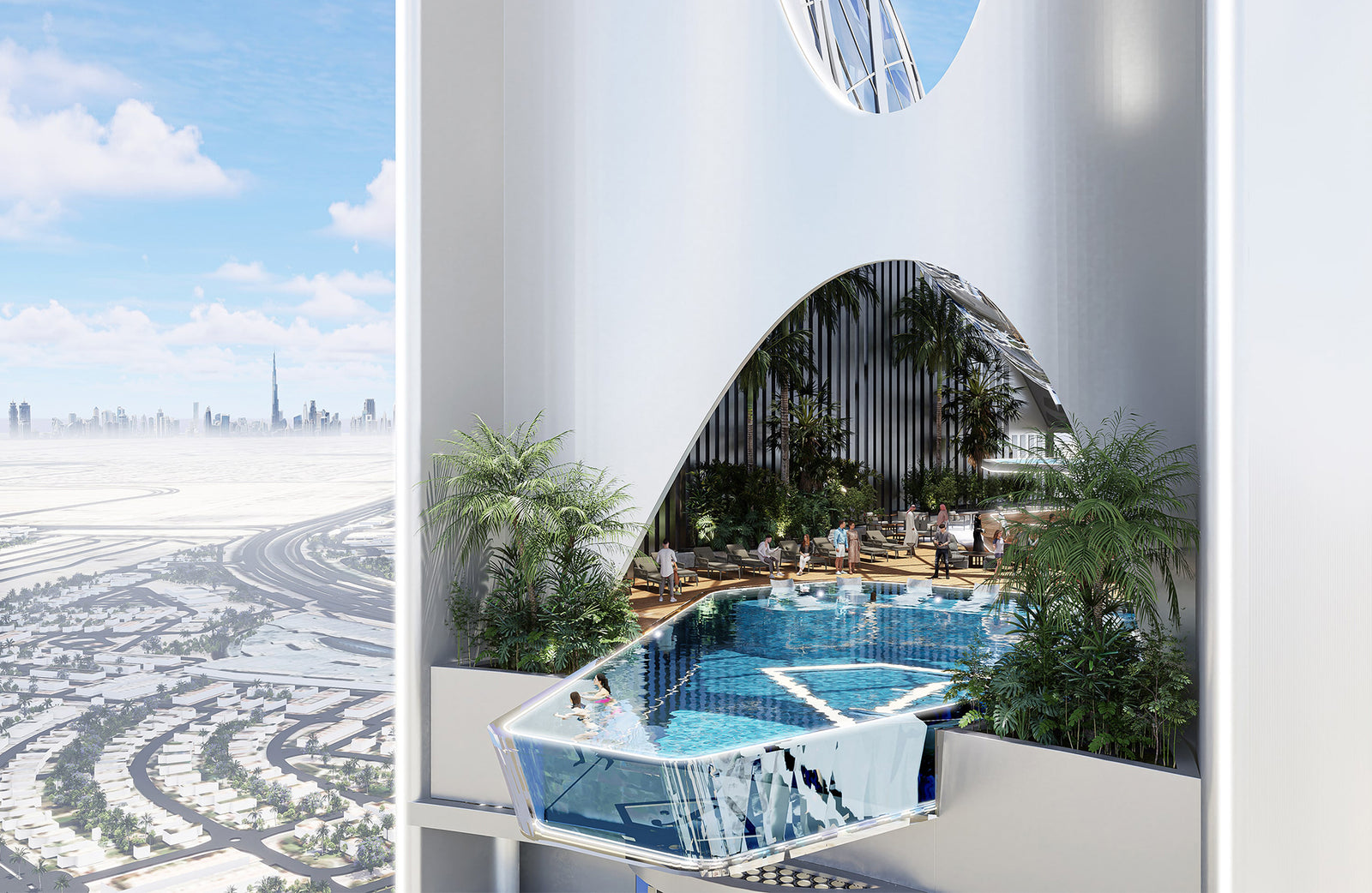 Fashionz by Danube is one of the most ambitious projects in Jumeirah Village Triangle. The skyscraper will consist of a ground floor, 5 podium levels, 56 floors and a rooftop. Those interested in purchasing a branded residence can choose from studios and 1–3 bedroom apartments branded by FashionTV. The FashionTV branded amenities will include a perfect range of outdoor, indoor and shaded amenities, allowing future residents to experience only the best premium living. FashionTV branded FTV Salon Aesthetic Center will enable you to achieve fashion-forward style. Luxury dining will also be available in a lavish FashionTV rooftop restaurant with stunning views and gourmet cuisine. A spa and therapy rooms, a beauty salon, a trampoline park, a skating rink, as well as a rooftop outdoor area with a padel court, a rooftop infinity pool, a pool deck, a BBQ area, an outdoor chess cinema and a snooker zone, will allow you to relax and entertain yourself right on the territory of the development.