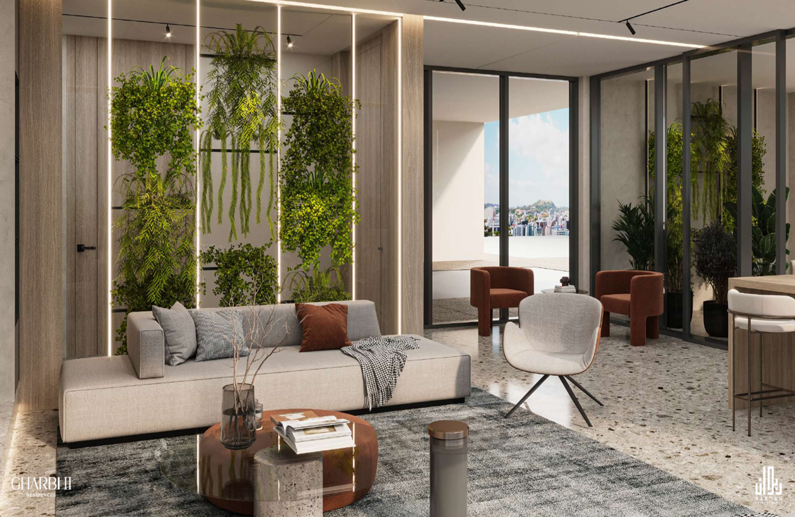Gharbi II Residences Comprising a total of 168 units across a G+3P+12+2R configuration, the illustrious façade promises residents an unparalleled living experience.Gharbi II offers premium amenities, including a swimming pool, fully equipped gym, sauna, steam room, gaming room, business hub, yoga space, and a café. With a flexible 70/30 post-handover payment plan, Gharbi II is scheduled for completion by Q2 2027, making it an exceptional investment opportunity. The building's exterior draws inspiration from the forms and colors of nature, creating a tranquil and soothing environment that evokes a sense of relaxation and comfort. Inside, residents are greeted with open floor plans, high-quality fixtures, and fine furnishings that exude sophistication and elegance. Natural light floods the interiors, creating a warm and inviting atmosphere, while smart home technology enhances convenience and connectivity. The fully fitted kitchens feature European-made appliances, ensuring both style and functionality.