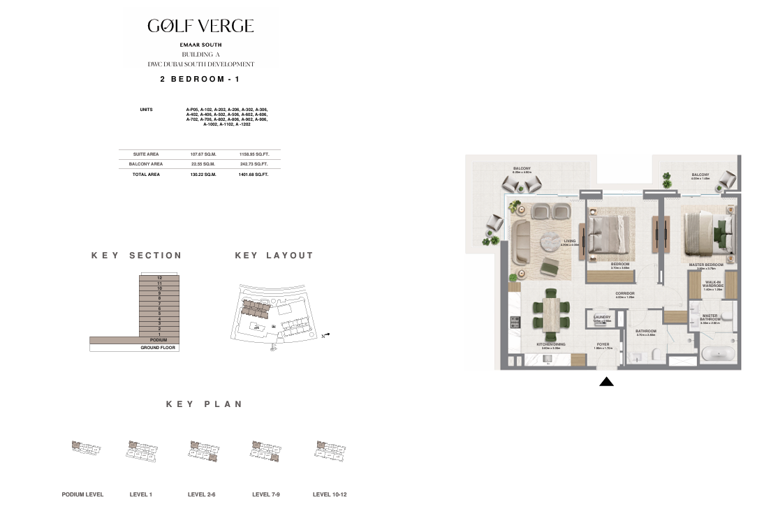 Perched on the edge of Emaar South Golf Course, Golf Verge is a gateway to endless green vistas and infinite inspiration. Here, vast emerald fairways unfold before you, an ever-changing landscape that mirrors your aspirations. Expansive glass windows frame sun-drenched views, turning every moment into a chance to dream, breathe, and embrace boundless potential.With its earthy-toned façade, the community merges modern design with the natural surroundings. A soothing palette creates an inviting space, perfect for relaxation and connection.The interiors fuse earthy tones and natural materials to create a warm ambience. Rich wood finishes, stone accents, and soft colours evoke calm, reflecting the peaceful surroundings while offering a stylish, nature-inspired space.