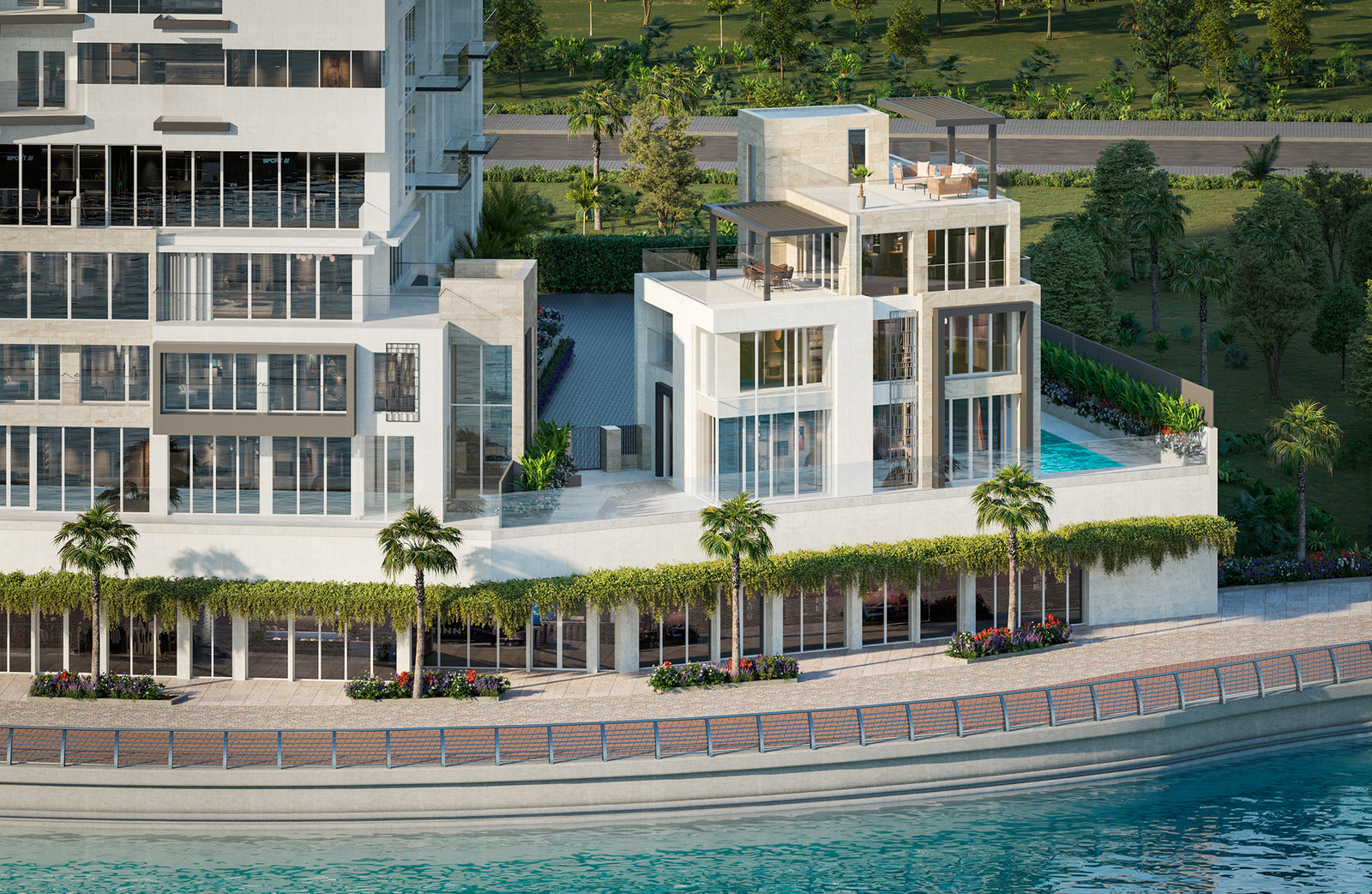 The Mansion at LIV Waterside provides its residents a private swimming pool and garden. The property consists of a ground floor, two storeys, rooftop terrace, and a separate driver’s loft with an air conditioned show garage for 6 parking spaces. The Mansion, with 23-ft high ceilings and a 13-ft high entry door occupies 10,000 sq. ft and provides gorgeous marina views. Residents of LIV Waterside can enjoy a lush landscape with olive and palm trees, and three levels of luxury amenities for signature waterfront living. These include a game room, cafe, virtual golf, billiards and children’s playground, just to name a few. Wellness facilities in LIV Waterside include a salt cave, steam room, yoga studio and outdoor dining lounge. Conference and meeting rooms will be an advantage for entrepreneurs. There are electric vehicle charging stations for residents in the complex.
