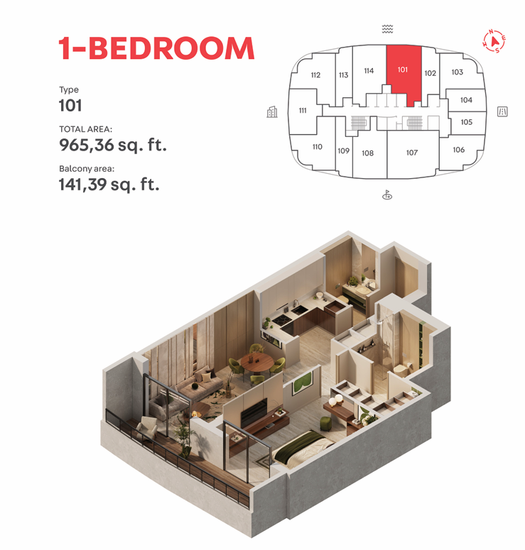 The building includes a basement level for parking, a ground floor with an inviting lounge area and a tech floor with 19 residential floors above. It has diversified residential units that have been designed to provide style and comfort. The building's design and architecture reflect modern taste, ensuring that each unit combines functionality and beauty. The interior design maximizes space with contemporary finishes, modern appliances, large windows, and high-quality accents.