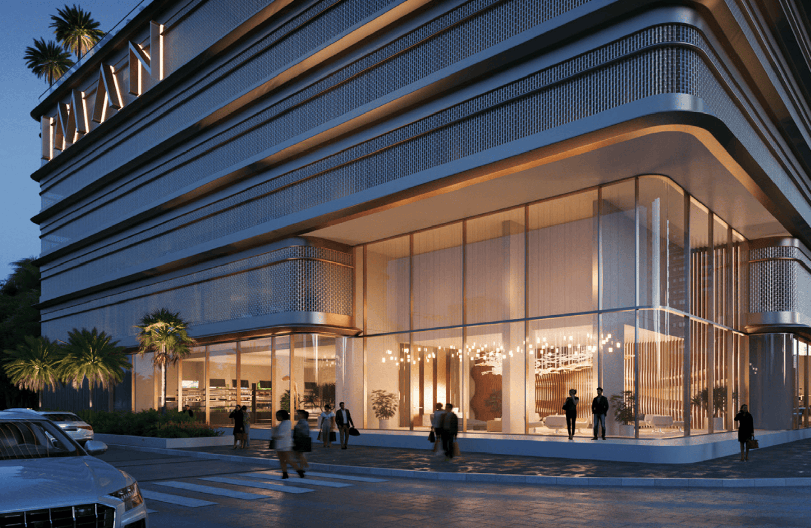 One Park Square is an architectural masterpiece featuring a stunning beige and gold facade that reflects the enduring charm of the desert. Graceful, flowing curves permeate the design, capturing the organic elegance of the natural world. Tranquil water features enhance the atmosphere, creating a harmonious balance between urban refinement and serene landscapes.