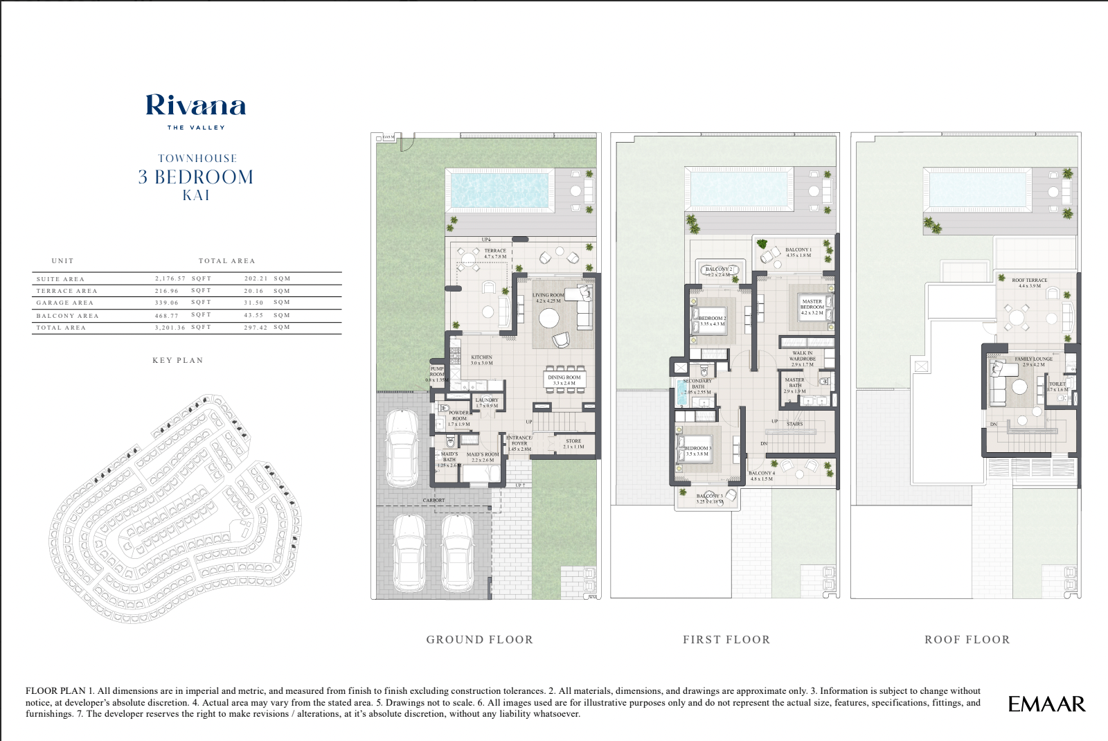 Rivana at the Valley by Emaar Properties is an exceptional residential development situated in the coveted neighborhood of The Valley, Dubai. Spanning three levels, including two upper floors, these residences offer expansive living spaces that exceed the size of previously marketed villas. With options ranging from 3, 4, and 5 bedrooms, each villa features a minimum surface area of 300m2, ensuring ample room for families to grow and thrive. Setting it apart from other developments, Rivana villas are built in pairs, boasting a distinct L-shaped garden and a covered garage. Representing a new era of contemporary living, Rivana offers a unique collection of twinned villas meticulously designed to provide a luxurious and spacious lifestyle. The architectural style of Rivana villas exudes modernity, with impeccable finishes both inside and out. Large windows adorn the villas, allowing natural light to flood the interiors while offering breathtaking views of the surrounding landscapes. Moreover, residents have the opportunity to create their private oasis by opting for a swimming pool in their garden. Further enhancing the allure of these exceptional homes.Rivana at the Valley by Emaar offers a wealth of luxurious amenities for an elevated lifestyle. Enjoy a fully-equipped gym, restaurant, swimming pool, amusement park, lush parks, and a kids’ area. Convenient retail stores and an all-inclusive supermarket are also nearby. Additionally, residents have easy access to Golden Beach, pocket parks, a town center, a variety of dining options, and sprawling district parks and lawns.