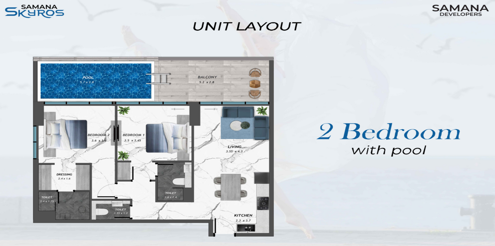 SAMANA Skyros, where every day feels like a holiday. This stunning residential property by SAMANA Developers is the epitome of luxurious living, offering an exceptional experience for those seeking a peaceful yet vibrant lifestyle Nestled in the heart of a thriving community in Arjan (Dubai), this property has been thoughtfully designed to offer an unmatched living experience. Whether you're looking for a place to call home or a vacation destination, SAMANA Skyros is a perfect choice. We believe that life is meant to be enjoyed to the fullest, and our property is designed to embody this philosophy. From the lush greenery to the serene water features, and private pools; every aspect of SAMANA Skyros is inspired by the tranquillity and beauty of a tropical vacation.