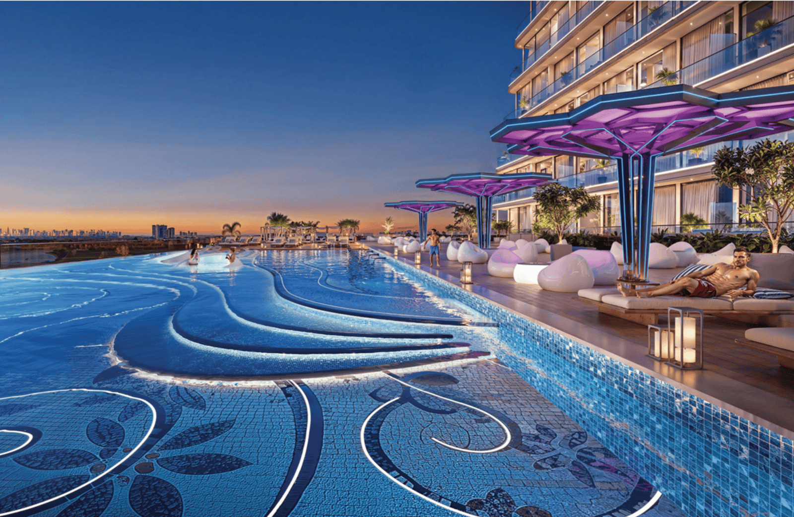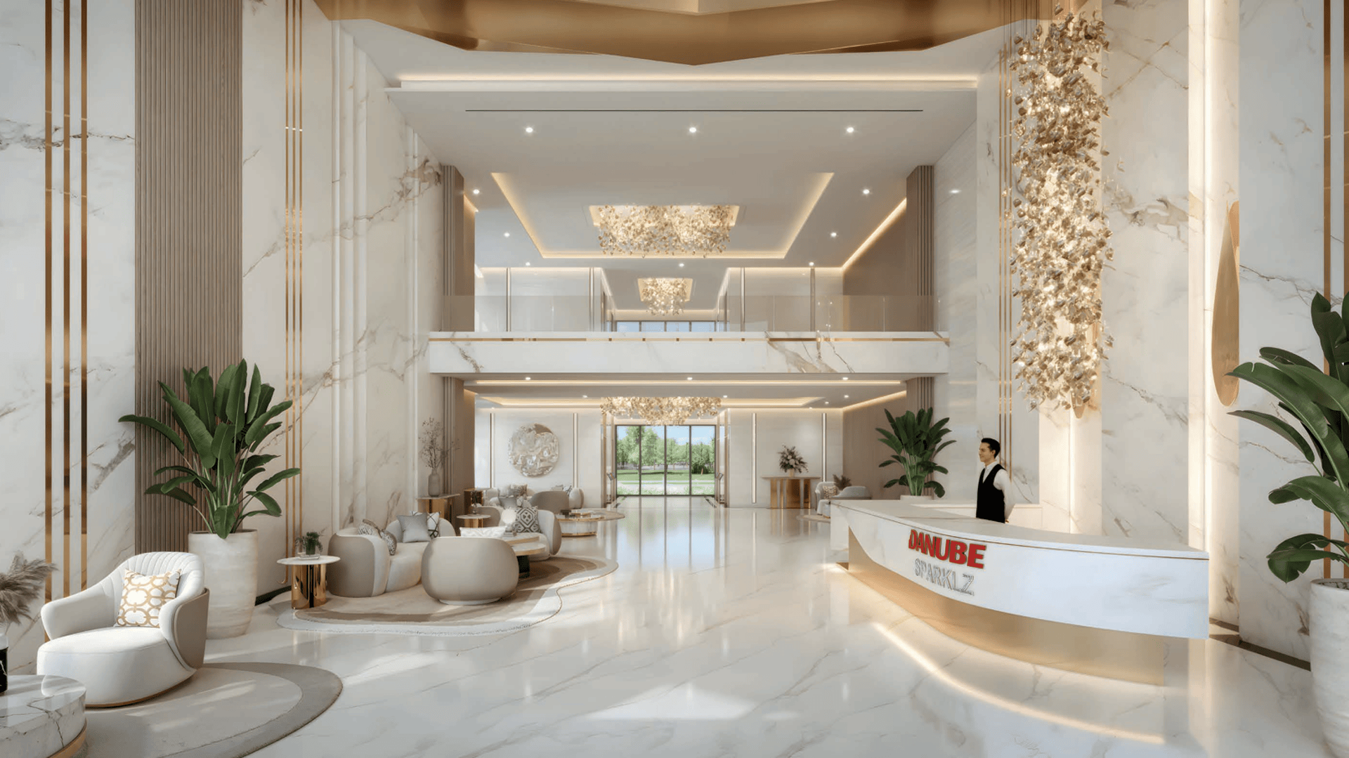 The prime Al Furjan position enables residents to quickly access all aspects of contemporary Dubai living. Sheikh Zayed Road together with Sheikh Mohammed Bin Zayed Road enable residents to travel quickly to Dubai Marina and Palm Jumeirah as well as to Downtown Dubai and DIFC's business centers. The connectivity system provides direct access to landmarks but serves above all to establish your connection to a growing urban center that includes first-rate learning institutions and local shopping centers. Residents experience the luxury of being close to their needs but finding peaceful seclusion from urban hustle and bustle. The architectural identity reveals itself through its dynamic angular design and its strong presence of energetic momentum. The elements of the façade simulate the movement of light on a diamond surface through geometric light effects. The tower is more than a rising structure because it sends out radiant energy that represents Danube's approach to creating innovative luxurious spaces. The entrance area offers a theatrical environment that creates an atmosphere of grand hotel luxury. The thoughtful designs extend to every area within the building as the stunning lift lobbies intertwine with a pool area that provides exquisite perspectives and luxurious design elements. The tower’s vertical design establishes itself as a dynamic masterpiece that remains timeless even as it stands as a prominent landmark of Al Furjan.