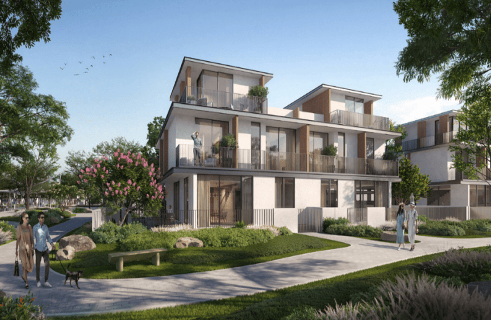 The strategic location of this new development further enhances its appeal. Situated at a prime intersection, the development offers easy access to key areas of Dubai, making it an ideal choice for those seeking convenience and connectivity. The proximity to the Expo site and major roads ensures that residents are well-connected to the city's main attractions, business districts, and entertainment hubs. Residents will be greeted by meticulously designed spaces that emphasize health and relaxation. At the heart of the community lies a state-of-the-art wellness center, surrounded by lush greenways and tranquil water bodies. This hub of health and fitness is equipped with cutting-edge technology and wellness programs, fostering a community atmosphere where like-minded individuals can connect and thrive. The development features a significant amount of open space, with 1.36 million square meters dedicated to lush landscapes, serene pathways, and picturesque ponds, creating a peaceful environment perfect for relaxation and rejuvenation.