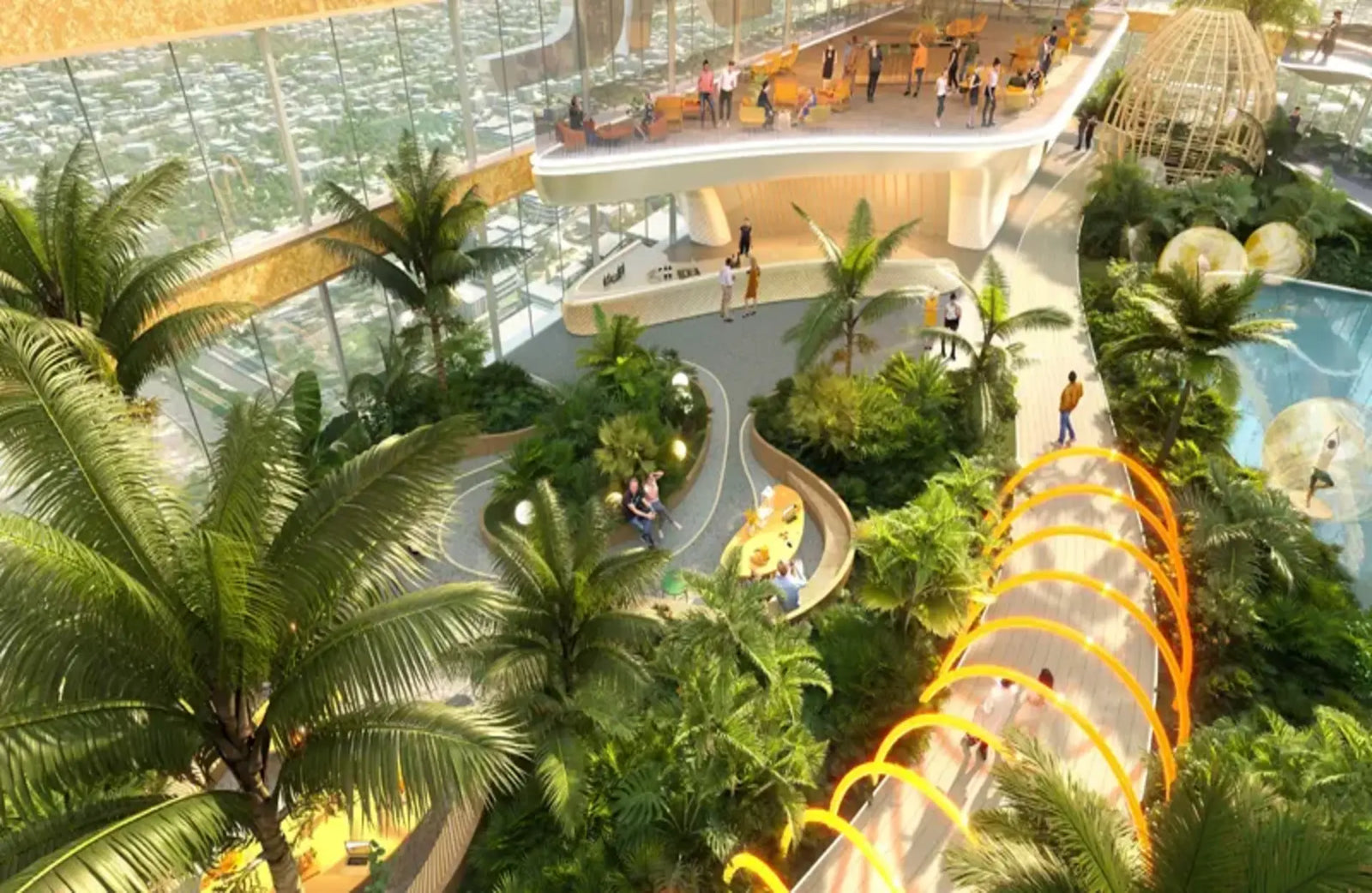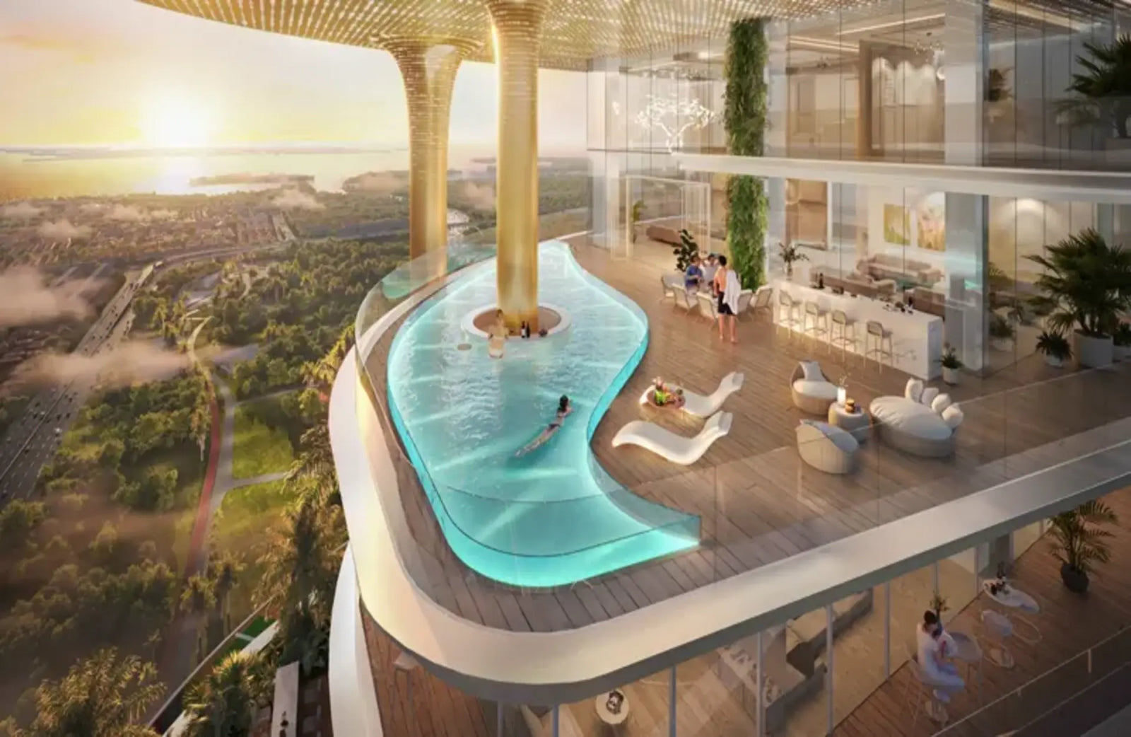 Upon arrival, residents and guests are greeted by a branded entrance area that sets the tone for the lavish lifestyle within. The ground level features captivating lobby areas designed to leave a lasting impression, while podium levels house exquisite townhouses, ensuring privacy and exclusivity. The fifth floor serves as a haven for relaxation and rejuvenation, with luxury spa retreats and a 24/7 gym catering to residents' wellness needs. From the 6th to the 52nd floor, the luxury apartments await, each meticulously crafted to exude sophistication and comfort. For those seeking the epitome of luxury living, the 53rd and 54th floors boast exclusive sky penthouses, offering unparalleled views of the city skyline. Beyond its lavish interiors, the development sets itself apart with an array of amenities designed to elevate the resident experience. From the serene sunflower and canary gardens to the innovative circadian pods and observation deck, every aspect of this development is imbued with a sense of luxury and tranquility. Notably, amenities such as the immersive ring of light, energy bubble, and immersive nature bring a touch of novelty and enchantment, ensuring residents experience moments of wonder and delight at every turn. The inclusion of a roof garden and swimming pool further enhances the allure of outdoor living, providing residents with a serene retreat amidst the bustling cityscape.
