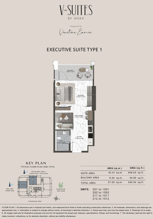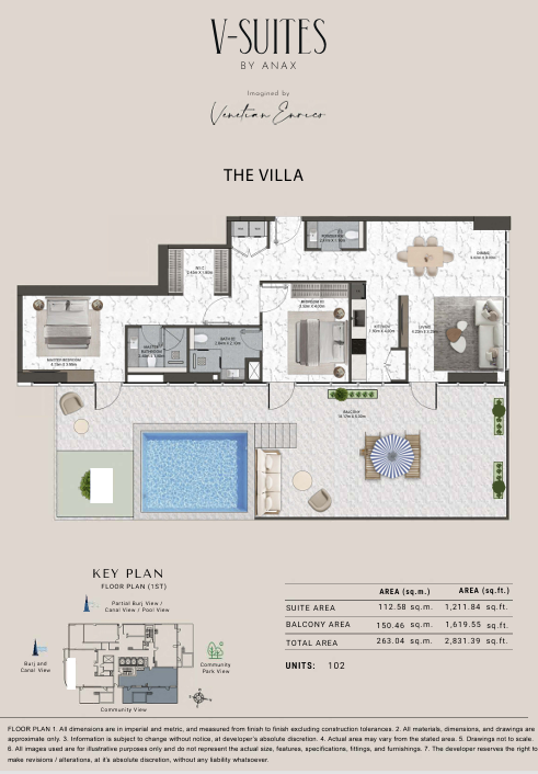 Residents at V-Suites enjoy five-star amenities, including a state-of-the-art gym, wellness studios, meditation zones, an outdoor cinema, on-water cabanas, co-working lounges, and The V Club — a members-only space for leisure and networking. Perfectly located, the residence is just 5 minutes from Sheikh Zayed Road and Business Bay Metro, 10 minutes from Dubai Mall, Burj Khalifa, and DIFC, and 20 minutes from Dubai International Airport. Whether for work, leisure, or relaxation, everything you need is always within reach.