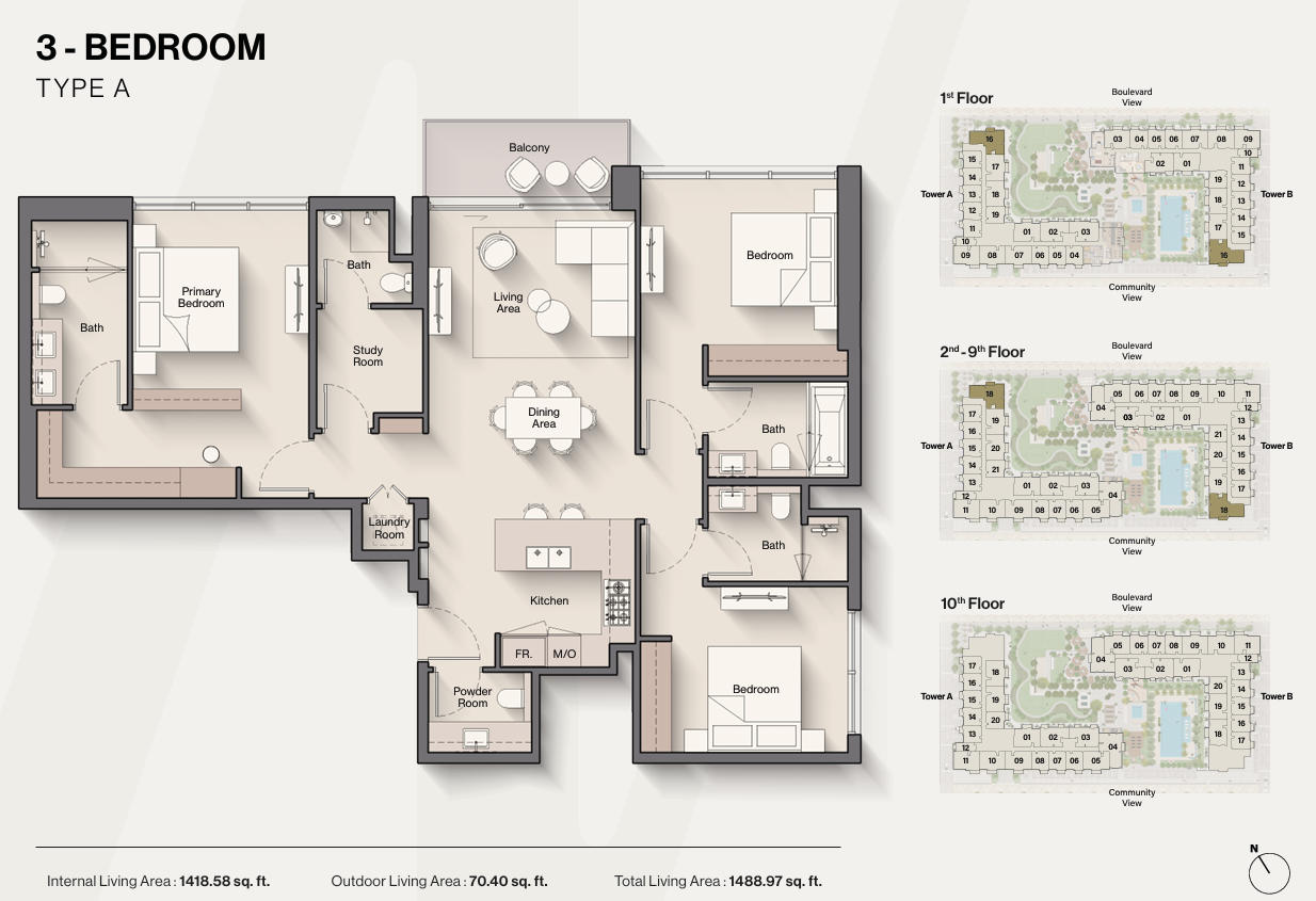 The first floor amenities brings residents together through a harmonious blend of leisure, nature, and shared spaces. At its heart lies a clubhouse that extends seamlessly onto a generous outdoor terrace, perfect for relaxed seating, social gatherings, or quiet reflection under open skies. Surrounding this are tree-lined pathways and landscaped walkways, creating a serene setting where nature weaves into everyday moments. Residents can enjoy both active and tranquil pursuits, whether cooling off in the adult pool, watching little ones splash in the dedicated kids’ pool, or spending quality time in the family lawn area, complete with outdoor games and seating zones. At Windsor House, nature is not simply a backdrop, it is integrated into the living experience, creating a peaceful yet vibrant environment where community flourishes. With its strategic location in Dubai South, residents benefit from proximity to key transport links, schools, parks, and the future Al Maktoum International Airport, all within a master-planned community designed for the future of Dubai.