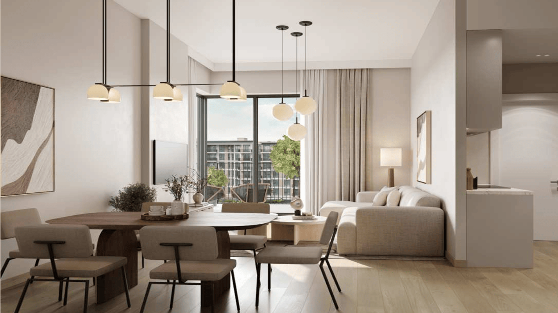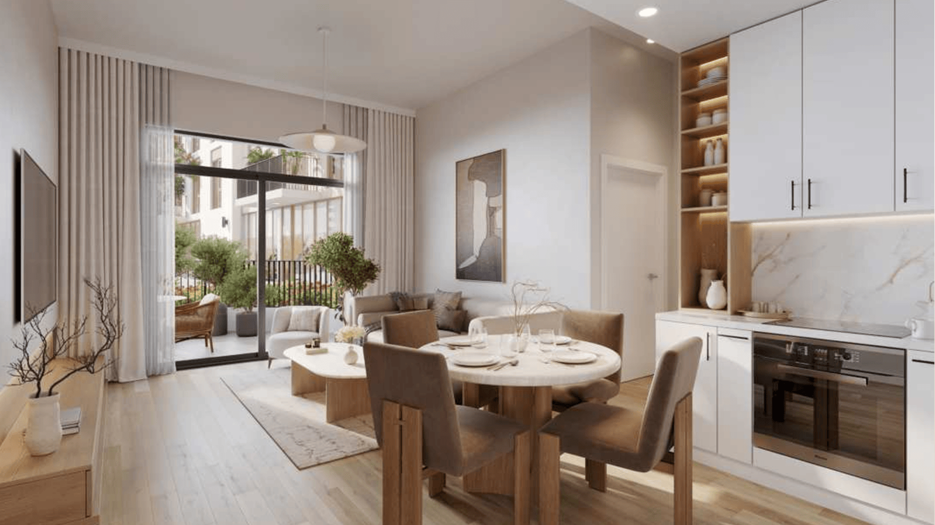 Located along the renowned boulevard, the building features a striking, modern design with sleek lines, large f loor-to-ceiling windows, and a stunning façade in soft, earthy tones. AUGUSTA offers the ideal blend of refined beauty and practical design, setting a new standard for urban elegance.Experience a seamless blend of modern design throughout. The living and dining areas are bathed in natural light, creating a welcoming and cozy atmosphere. Bedrooms feature refined porcelain flooring and roomy built-in wardrobes, while the master suites offer the indulgence of luxurious en-suite bathrooms. The kitchen boasts a generous countertop and stylish, streamlined storage, combining elegance with practicality for an exceptional cooking experience.