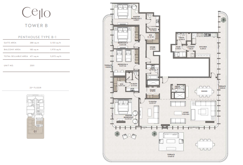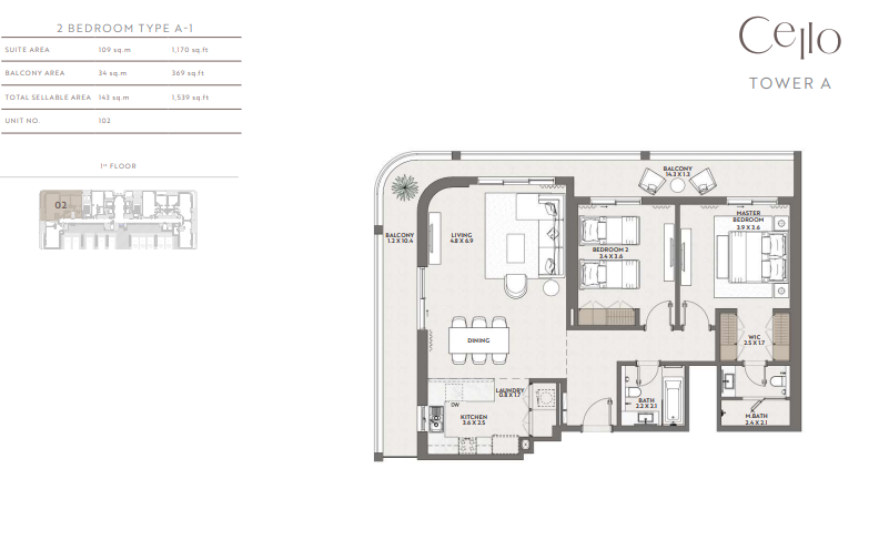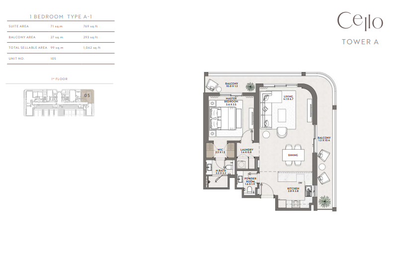 Discover luxury living with Cello at JVC, a prestigious project by Taraf Development offering luxury design studios, 1, 2 & 3-bedroom apartments and 4-bedroom penthouses. This twin tower architectural masterpiece comprises Tower A with 21 floors and Tower B soaring to 23 floors, showcasing a harmonious blend of modern aesthetics and thoughtful design, boasting a serene lifestyle redefining luxury living.