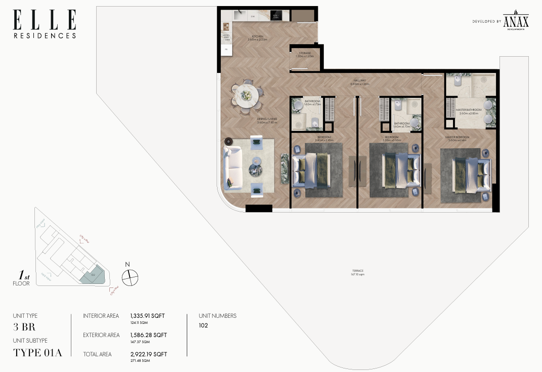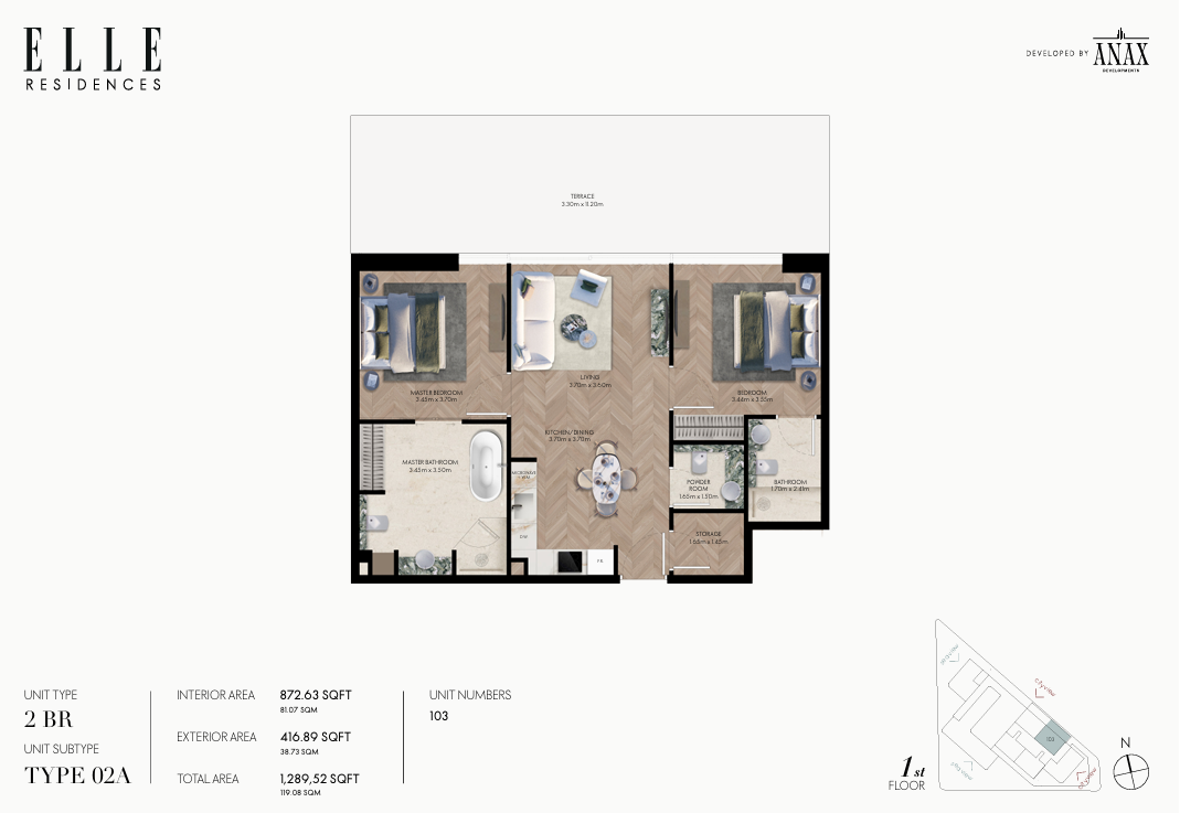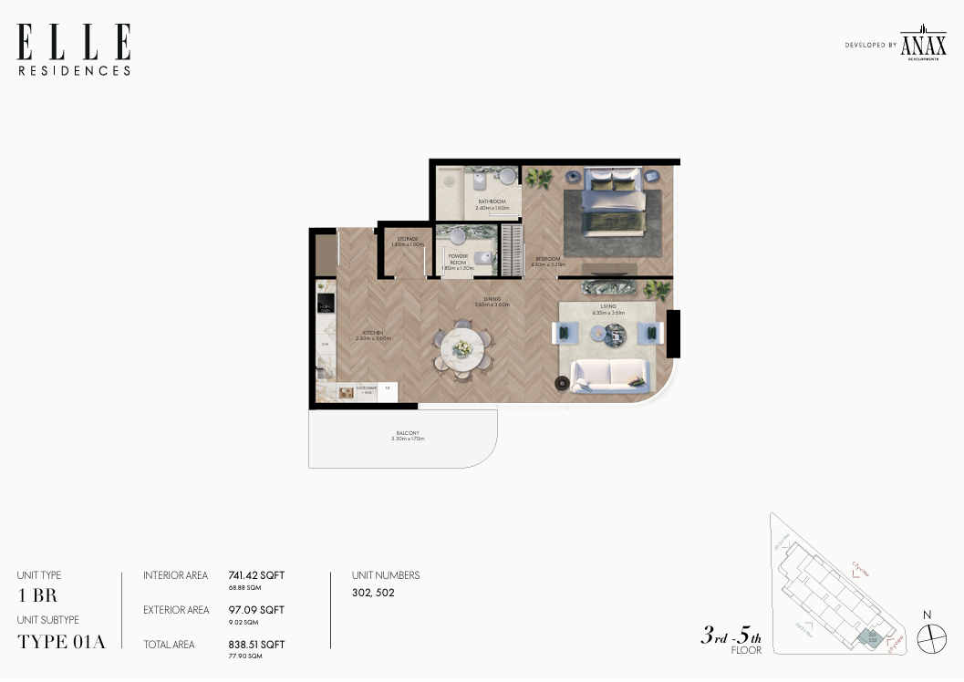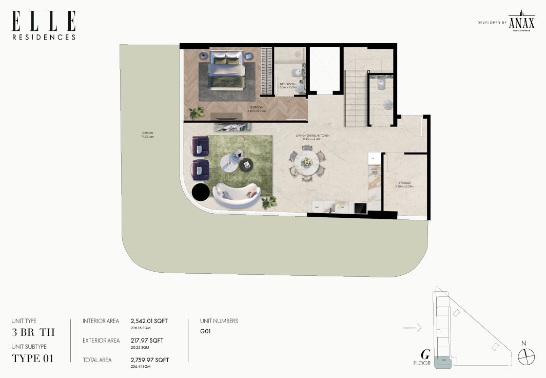 Elle Residences is a bold expression of luxury and lifestyle-driven architecture. The sculptural design features rooftop terraces, meditative garden escapes, and thoughtfully planned spaces to nurture balance and beauty. Offering a range of 1 to 3-bedroom residences and exclusive townhouses, the development is infused with contemporary flair and functional elegance. Each home is fully equipped, maximizing natural light and ocean-facing views to create an unparalleled living experience.