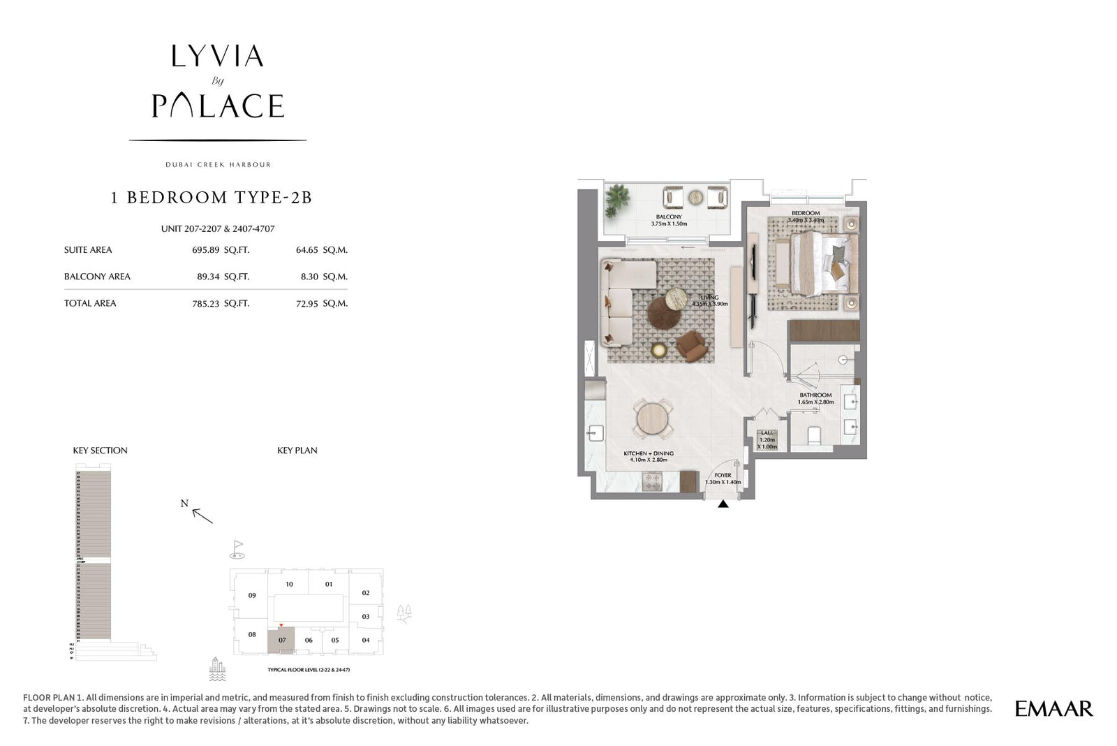 Lyvia by Palace at Dubai Creek Harbour (DCH) is a high-rise and bold residential pinnacle by Emaar Properties paired with hospitality-branded 1 to 3-bedroom apartments and townhouses. Rising beautifully, this contemporary masterpiece emerges with fine and clear lines, offering a diverse series of premium homes with views of a flowing creek and the bustling surroundings. Being one of the highest towers of the region, it’s been imagined by Emaar Hospitality’s globally known brand of Palace Hotels + Resorts. The iconic position of this building is within the lush paradise of Green Gate, which is a peaceful and self-sufficient suburban locality that offers an escape from the city’s vibrancy and easy access to lifestyle and cultural sites.