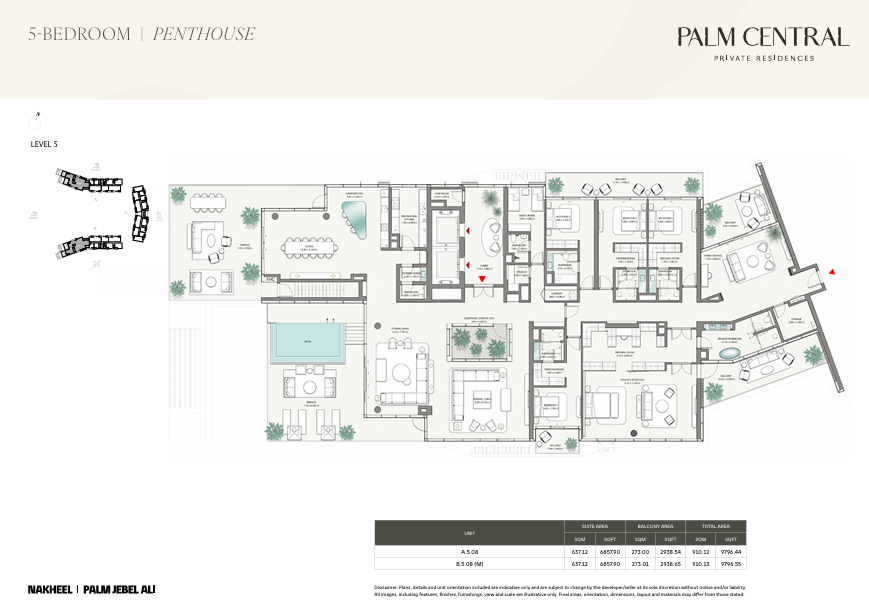 Palm Central offers an exceptional collection of indoor and outdoor amenities — including an infinity pool with Jacuzzi, a private beach, gym and yoga studio, game and kids’ play areas, padel court, outdoor co-working zones, and elegant social lounges. Located along the vibrant spine of Palm Jebel Ali, residents enjoy proximity to community centers, parks, wellness hubs, mosques, and fine dining venues. With world-class hotels and leisure destinations just moments away, Palm Central Private Residences is more than a home — it’s a complete resort lifestyle at the heart of Dubai’s most visionary island.
