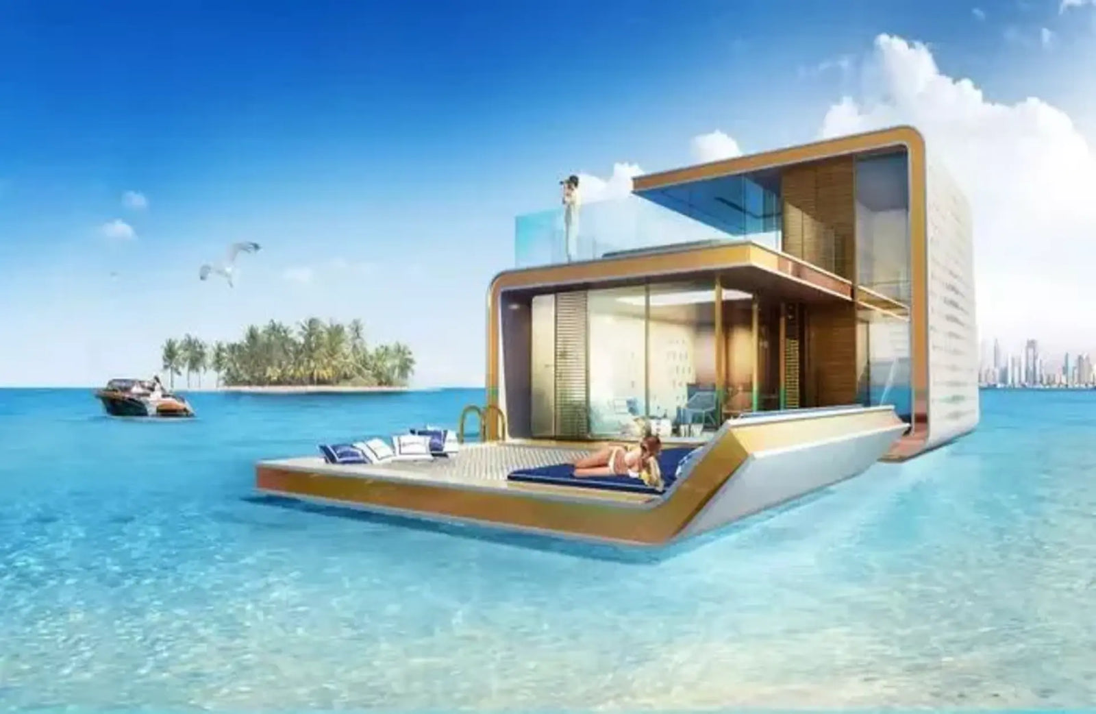 The Floating Seahorse is located on St. Petersburg Island, which is one of six islands in the Heart of Europe. The islands in this area are connected by floating piers. The complex is considered to be a miracle of modern engineering. Each villa is on its own tiny island that is surrounded by water and connected to neighbouring private islands. The area maintains an ideal balance between secluded and community living.The complex consists of 133 three-level villas that are for sale. Properties include one- to four-bedroom villas that feature many state-of-the-art amenities. Underwater floors have living rooms and bedrooms with adjoining bathrooms. Sea levels have living rooms, solariums, and kitchens, and the upper floors include living rooms, balconies, and glass-bottom Jacuzzis. All villas have panoramic glass walls that offer incredible views of the coral reefs and sea life. To ensure the maximum level of safety and privacy, top decks and sea levels have open space enclosures.
