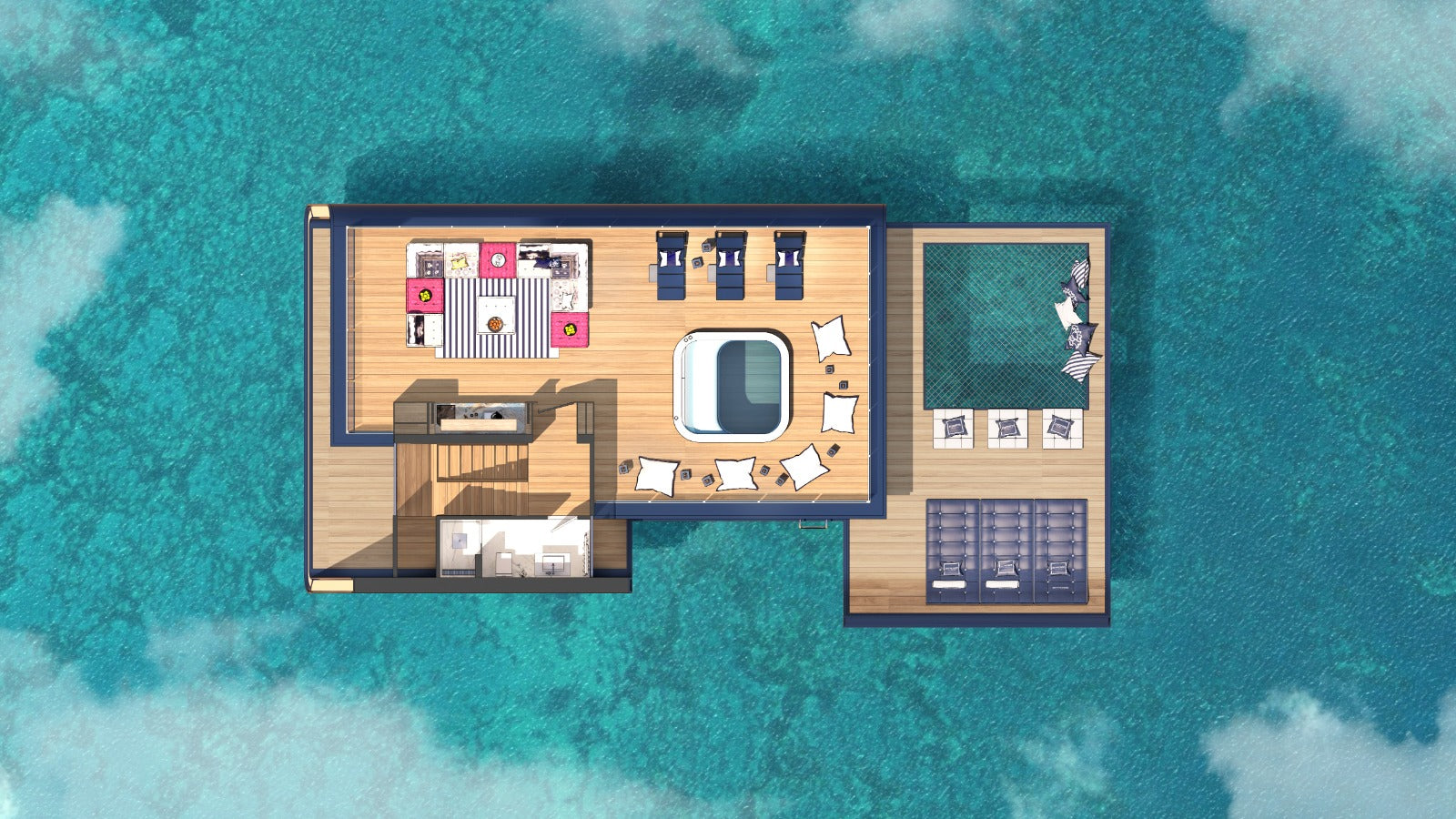 The Floating Seahorse is a community of ultra-luxurious villas on the World Islands archipelago, which consists of 300 artificial islands situated off the coast of Dubai. The development’s main features include artificial coral reefs and climate-controlled streets. The project was developed by Kleindienst Group.
