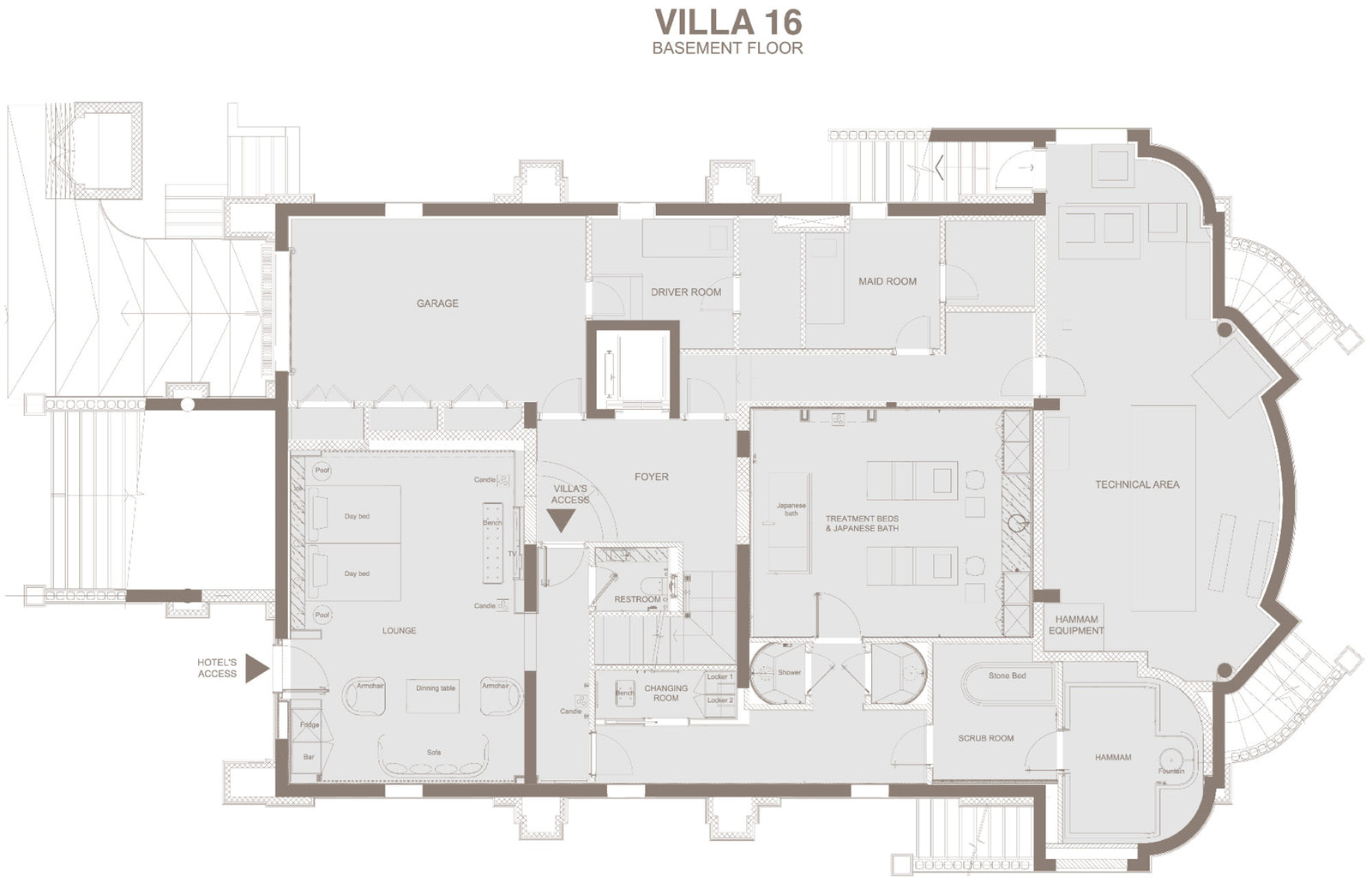 Raffles The Palm Dubai is a new mixed-use complex with Dubai’s iconic European Palace and serviced villas. The development company of the project is Royal Group and the 5-star luxurious beach resort sits on the West Crescent of Palm Jumeirah and is inspired by palaces of Continental Europe. This newly launched luxury project offers residents and guests of the resort to enjoy an elegantly curated stay, as well as exquisite fine dining and leisure experiences. Potential buyers are able to choose between Royal and Imperial Villas located by the sea, with floor plan areas ranging from 8,367 to 9,343 sqft at Raffles The Palm Dubai. Villas with four bedrooms have a unique position adjacent to the shoreline where residents will enjoy direct access to enchanting gardens with tropical plants, as well as the resort’s private beach with white sand imported from the Maldives. The standalone private residences have 4 floors: basement, ground floor, upper floor and a rooftop. Luxury properties have a large jacuzzi, a private entrance and a private spa and two private infinity swimming pools.