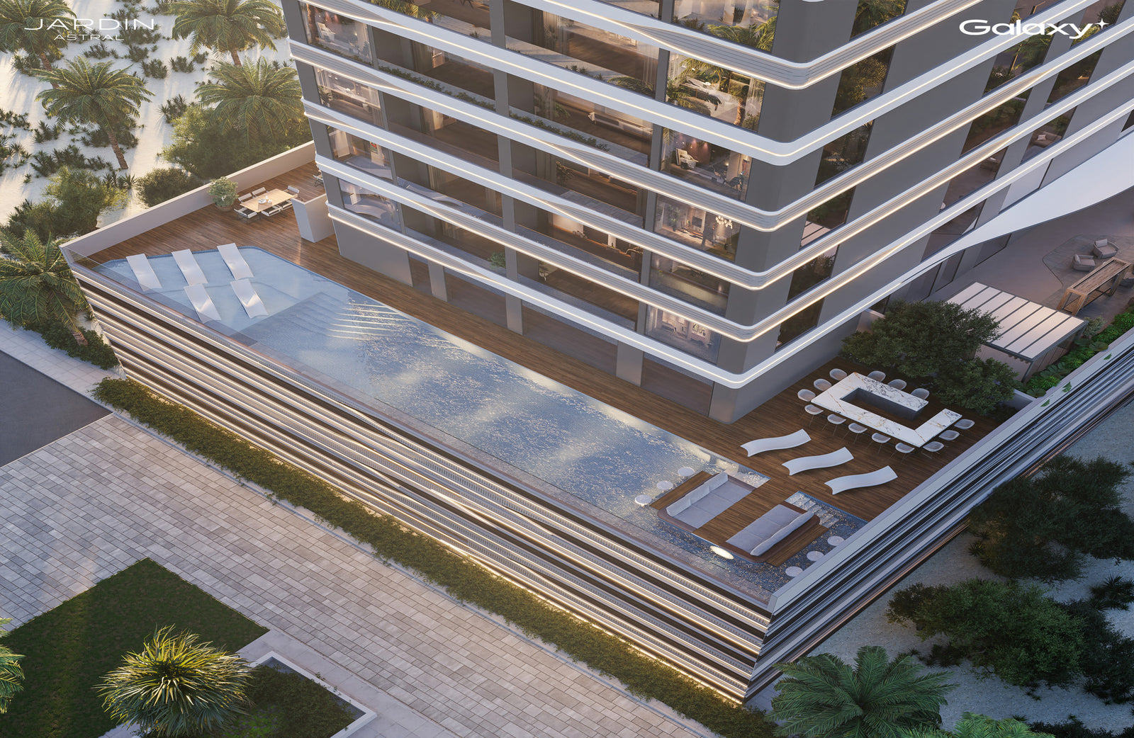 This is a star-studded garden facing property: with a first floor club house, swimming pool/ sun deck for work and play, four exclusive apartments with large private terraces, and a rooftop gazebo with a starry night-time displayLiving in Jardin Astral, you are a quick walk or short drive away from every landmark, and centers of activity. Downtown Dubai, International Airport (DXB), City Walk, World Trade Center, Jumeirah Beach, and more.