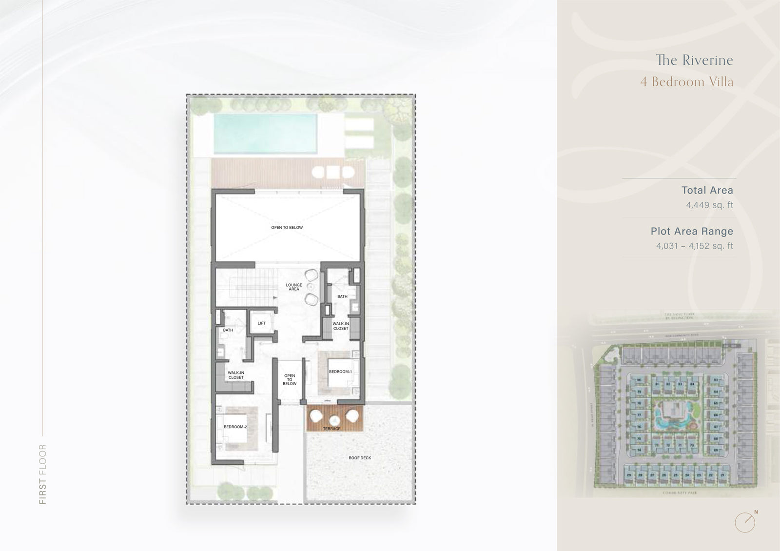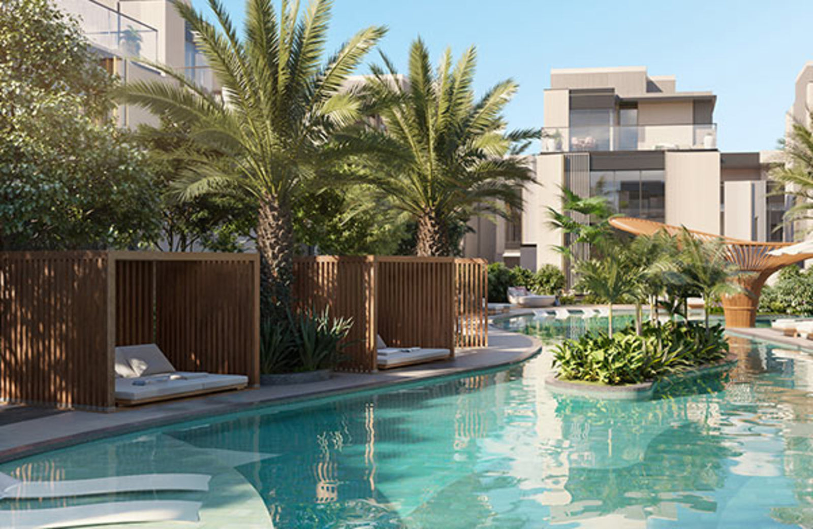 The Alcove, comprising 25 mid-unit townhouses, blends contemporary aesthetics with timeless comfort. These townhouses are thoughtfully designed to ensure a peaceful and serene living experience, featuring superior sound insulation for tranquility. Residents can choose between an open or closed kitchen, allowing for a personalized living space that caters to individual preferences and lifestyles. The Arcadia, with 28 corner-unit townhouses, features natural skylights that distribute warmth and brightness throughout the space, enhancing its design and interior characteristics. The open-plan layout encourages fluid movement and connection between spaces, while premium materials and finishes add a touch of sophistication. Residents of the development can enjoy an array of lifestyle amenities designed to enhance the lifestyle of its residents. The river club serves as the development’s central hub, offering access to a wide range of ground floor amenities, including adults pool, kids pool, plunge pool, and outdoor kids play area. Whereas, residents can also enjoy the arcade room, outdoor cinema, and various lounge areas catering to everyone's needs.